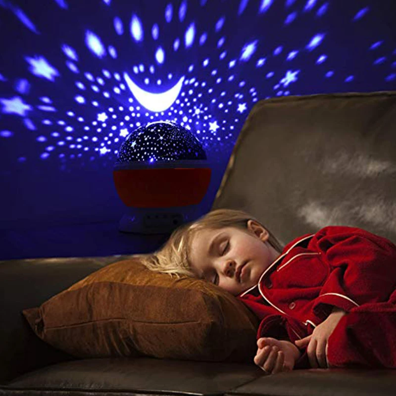 Красочные вращающиеся романтические проекторы, которые могут питаться от USB или использовать три батареи. Вы можете управлять монохромными или разноцветными накладками. Всего 10 эффектов. A-это желтая светящаяся кнопка, B-кнопка переключения цвета, а C-кнопка вращающегося узора. Без шума, сопровождать вашего ребенка спать под звездами.