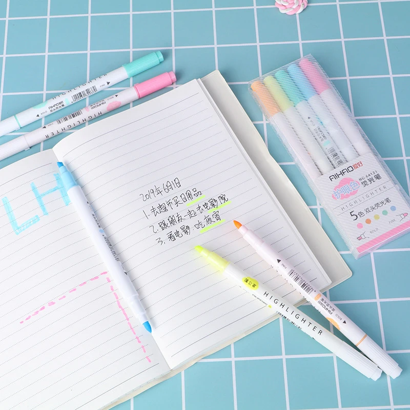Яркие двухсторонние маркеры ярких цветов, 5 шт., флуоресцентные мар...