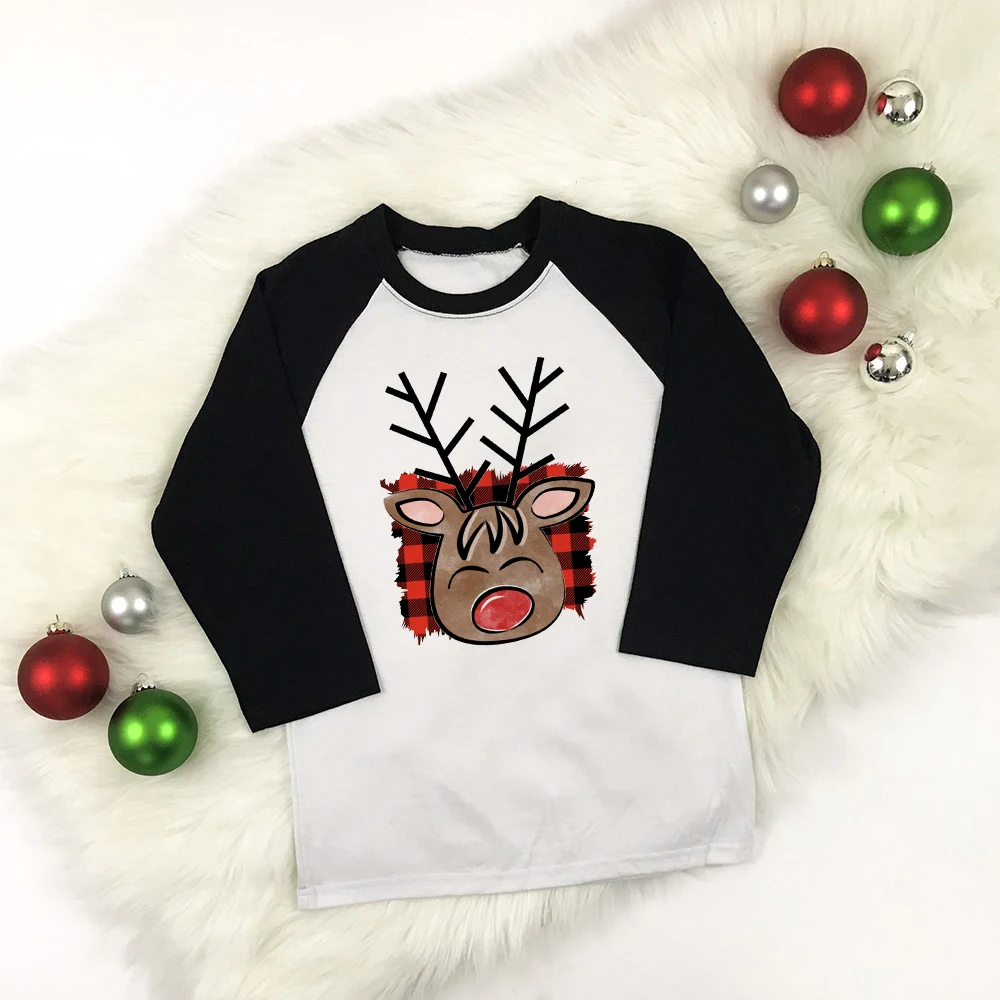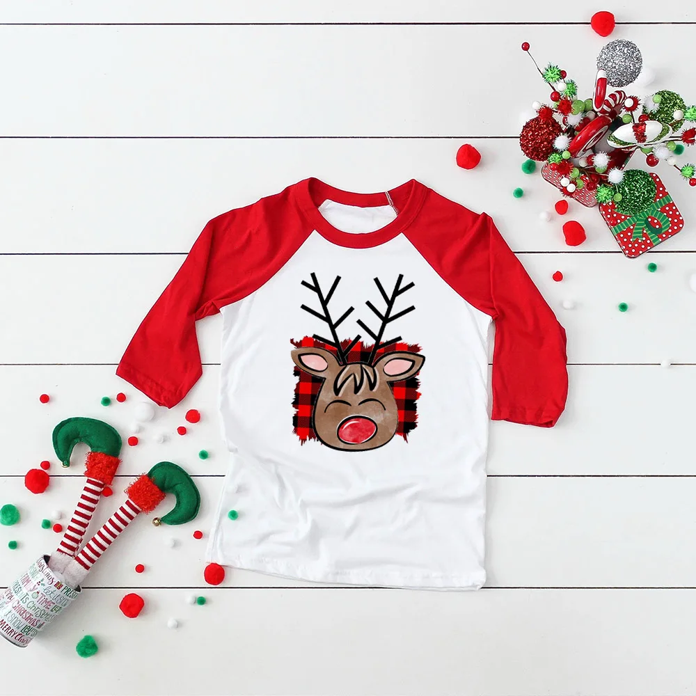 Детская Рождественская футболка с регланами детей ясельного возраста новогодние майки Рождественская футболка с длинным рукавом для отдыха, футболки в стиле "унисекс" для мальчиков и девочек топы с рукавом, одежда