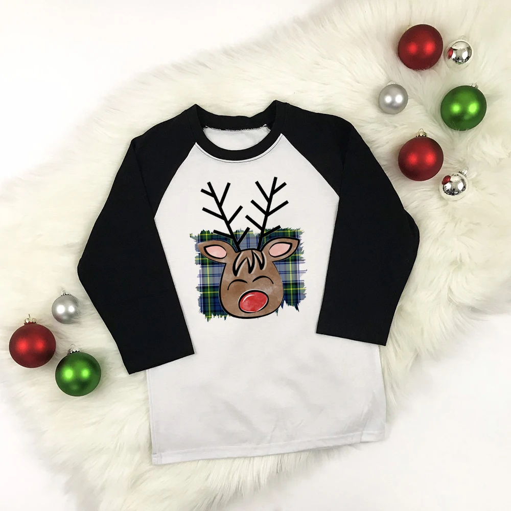 Детская Рождественская футболка с регланами, новогодние майки с длинными рукавами для малышей, Рождественская Праздничная футболка, топы унисекс для мальчиков и девочек