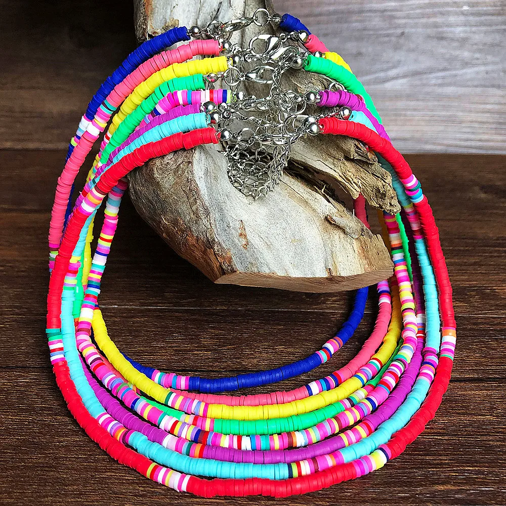Чокер из мягкой керамики для шеи, цветное пляжное ожерелье в богемн...