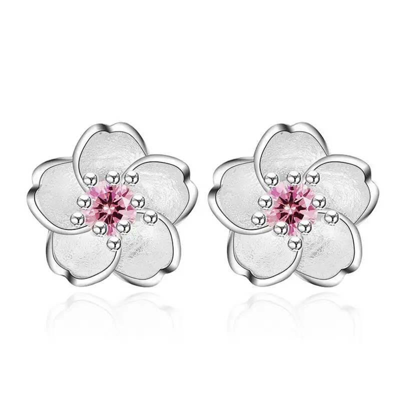 Серьги-гвоздики из серебра 925 пробы с розовым цирконием, инкрустированные цветком вишни, простые и популярные серьги для женщин
