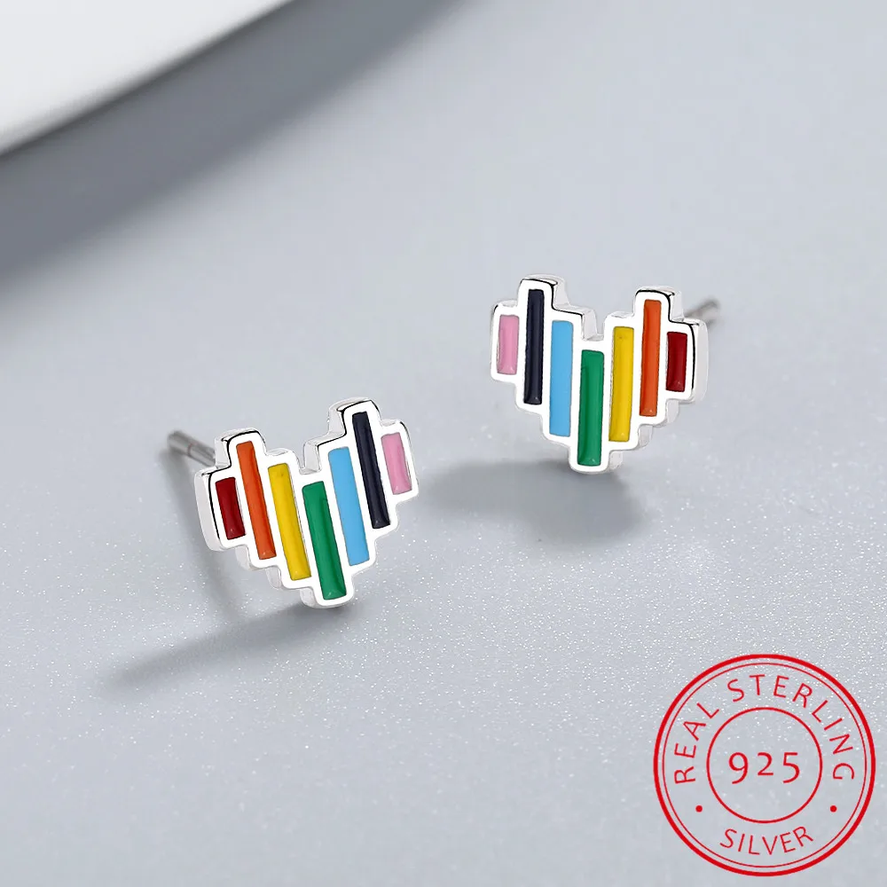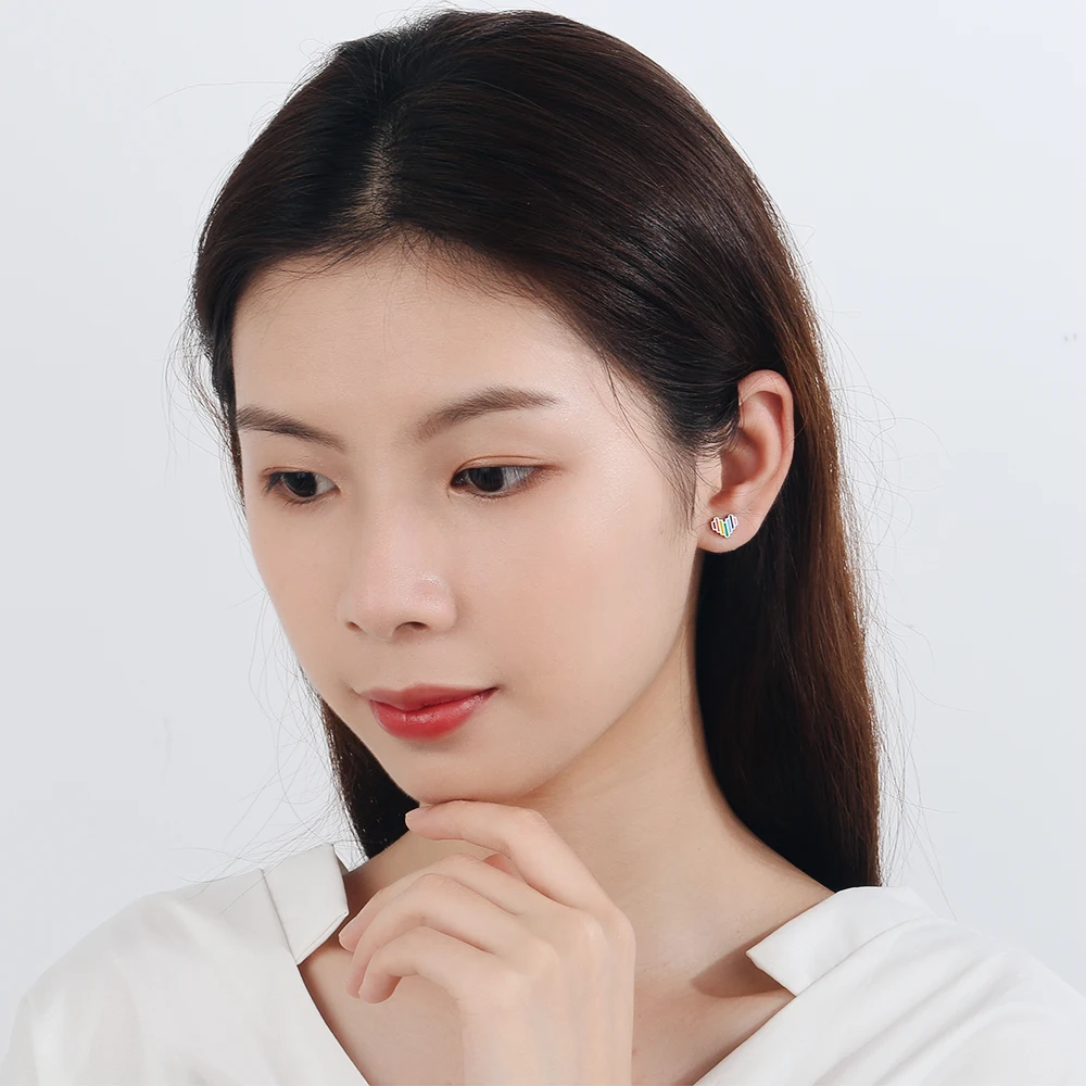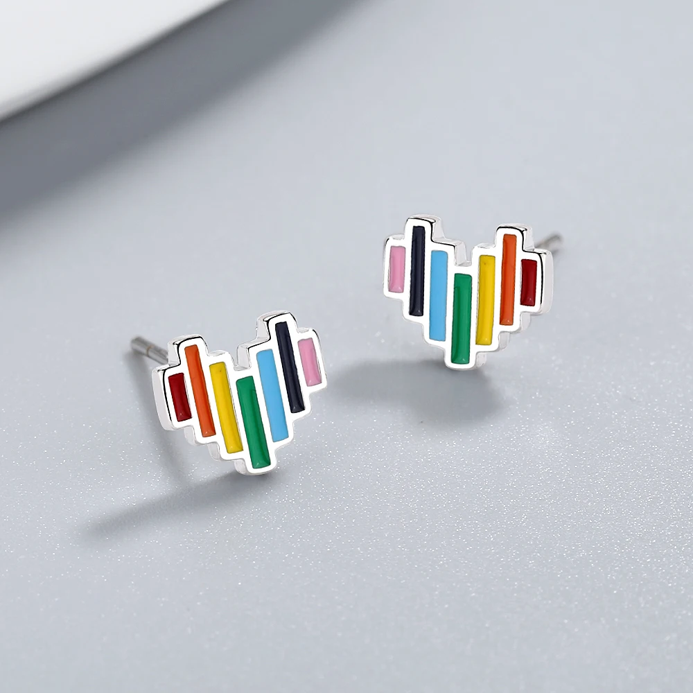 Серьги-гвоздики унисекс в виде радужного сердца, с эмалью