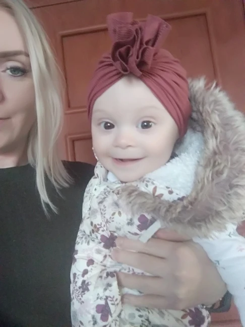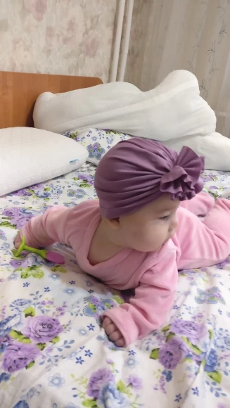 Шапка классная, дочке 6 месяцев подошла, но и на вырост хватит, так как хорошо тянется, ничего не давит. Доставка быстрая заказывала 11.11 пришла 01.12
