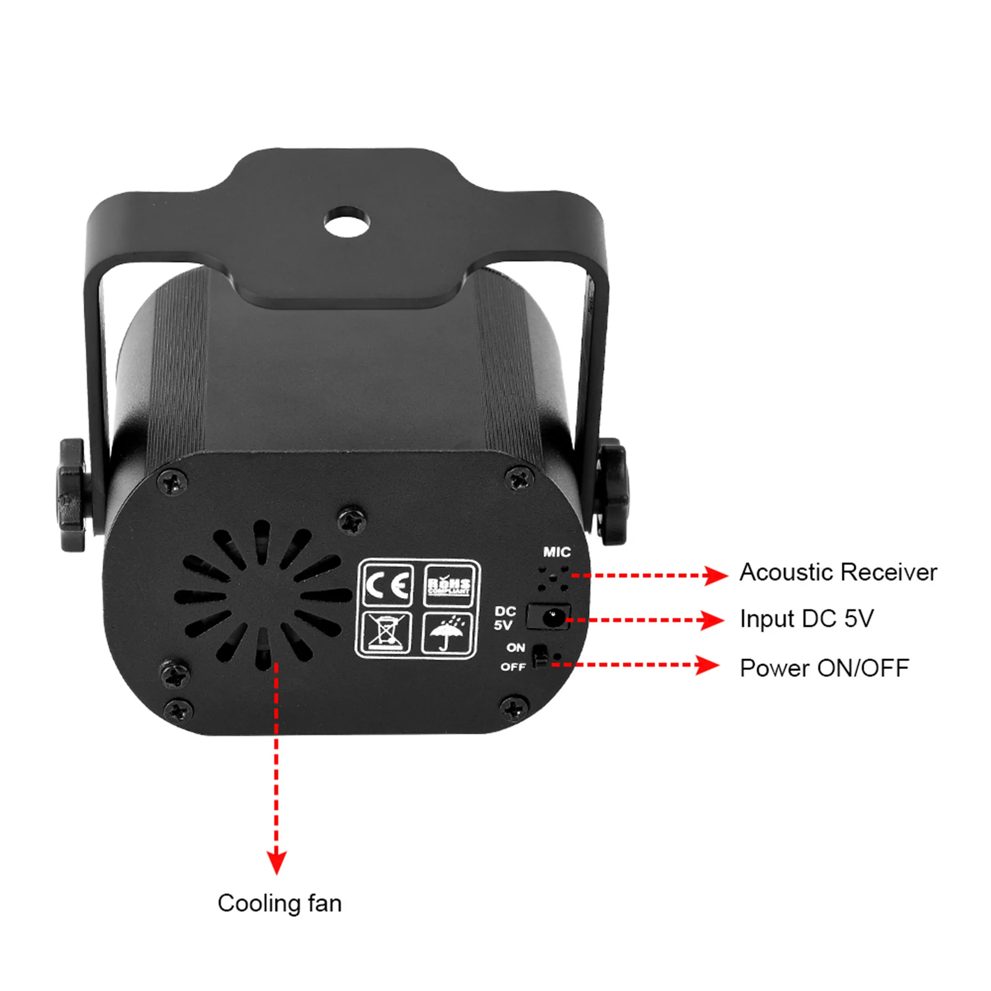 Лазерный светильник с узором и USB-зарядкой для прямой комнаты, частной комнаты, DJ, дискотеки, клуба, танцевальных вечеринок, выступлений, светильник ценических эффектов, освещение
