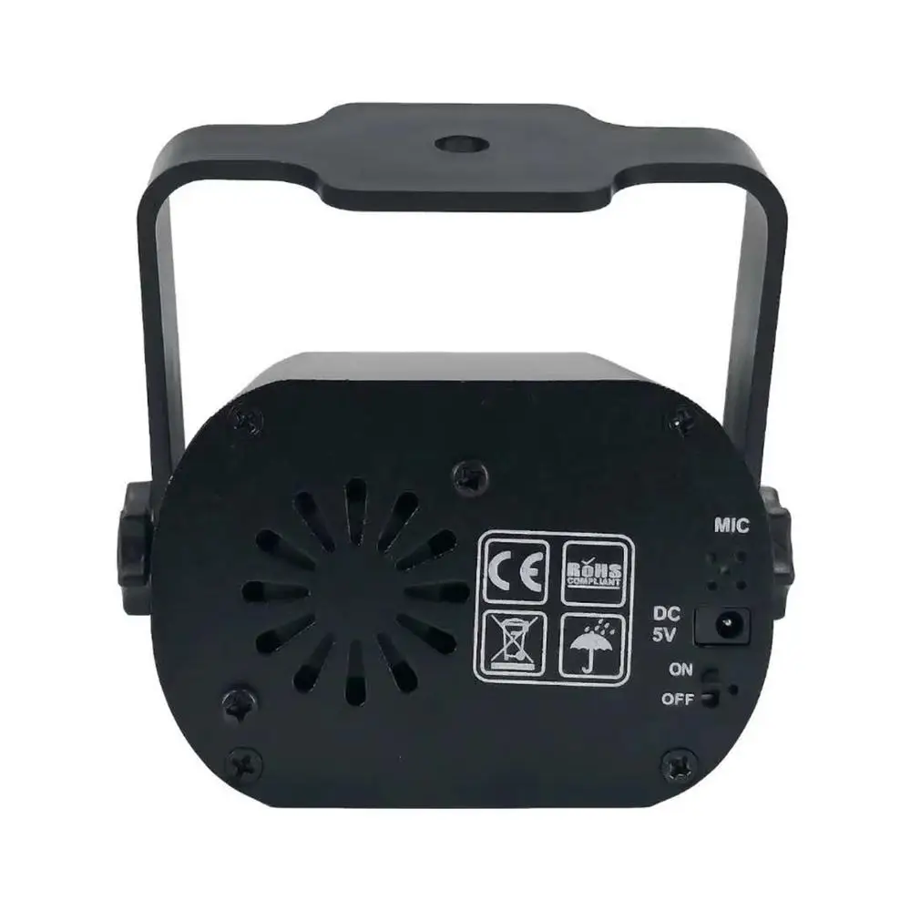 Тип товара: сценический светильникМатериал корпуса: алюминиевый корпусУровень защиты: IP20Светильник источник света: светодиодный лазерныйСерия: MiniЦвет изделия: черныйРежим: светодиодный и лазерныйСветящийся цвет: красный и зеленый лазер (светодиодный, красный, синий, зеленый светильник, различные инфракрасные узоры)Напряжение: 100-240 (В)Мощность: 6 ВтПрименимый источник питания: DC 5,0 V /1.0AВходное напряжение: 100-240 В, частота: 50-60 ГцМощность: Красный 100 мВт 650нм, Зеленый 50 мВт 532 нмОсновные сферы применения: бары, дискотеки, Семейные развлечения, танцевальные залы, выступления на сцене, свадьбыРежим воспроизведения: автоматическое воспроизведение, голосовое управление и дистанционное управлениеФункция работы: дистанционное управление, голосовое управление, вращение, стробоскоп, синхронизацияПульт дистанционного управления: регулируемое время освещенияРасстояние проекции: 5-10 метровРазмеры: 60 мм * 92 мм * 88 ммДлина кабеля: 2 метра (78,7 дюйма)Примечание:1. Пожалуйста, будьте осторожны, чтобы не смотреть непосредственно на лазерную диафрагму, чтобы избежать травм глаз.2. Этот блок предназначен только для использования в помещении и должен быть защищен от воды, влаги и тряски.