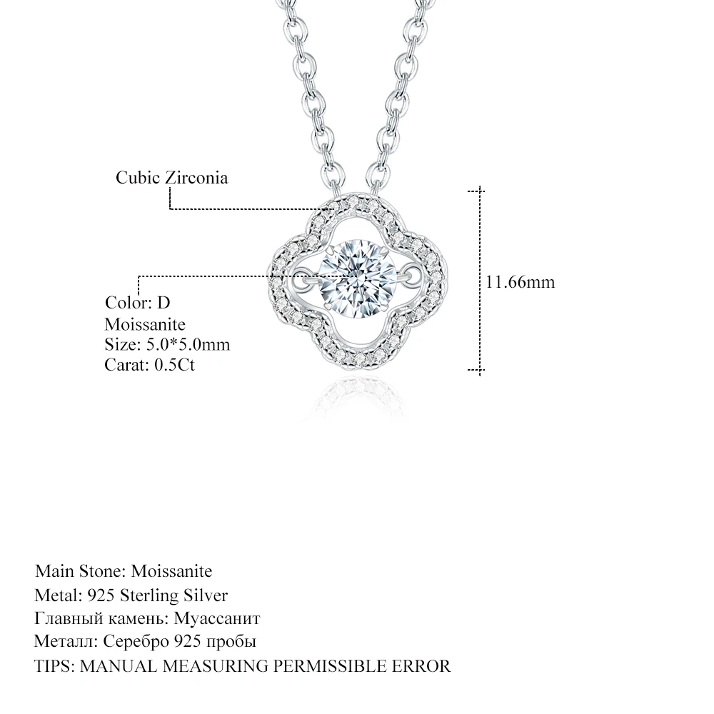 Gem балетки 925 пробы из стерлингового серебра кулон ожерелье 0.5Ct женские Круглый Муассанит ювелирные изделия 5,0 мм D Цвет синтетический бриллиант