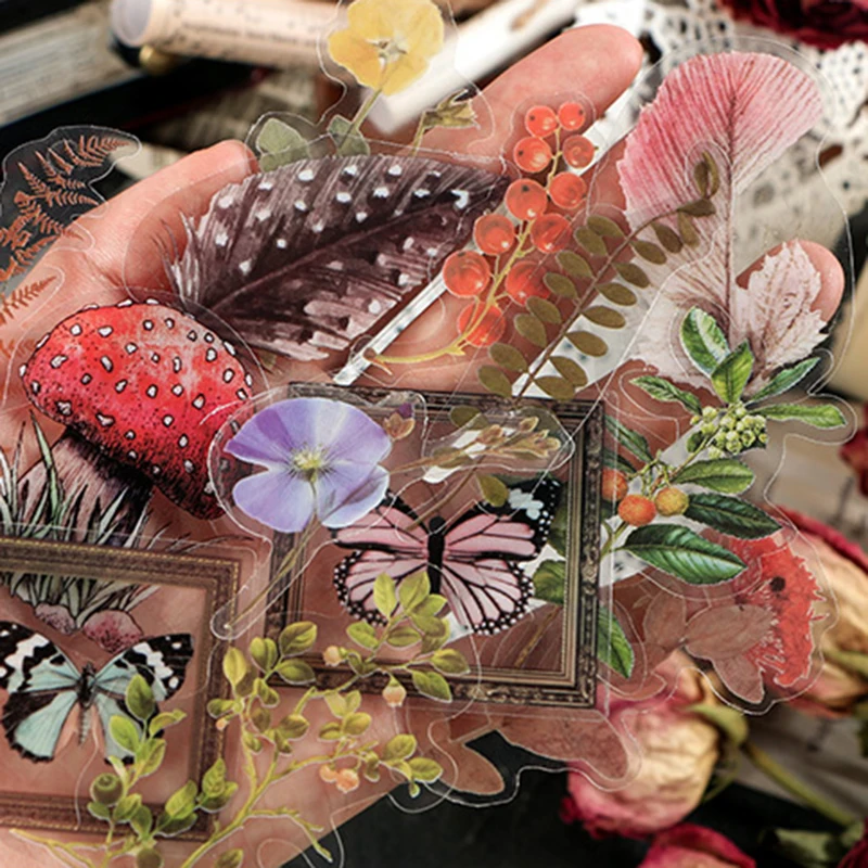 40 шт. в пакете, винтажные наклейки с ягодами, цветами, листьями папоротника, домашними животными, для самостоятельного оформления дневника, альбома, скрапбукинга