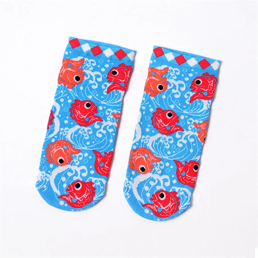 Носки женские жаккардовые, креативные, с рисунком японских суши, рыбы, милые, смешные носки Харадзюку