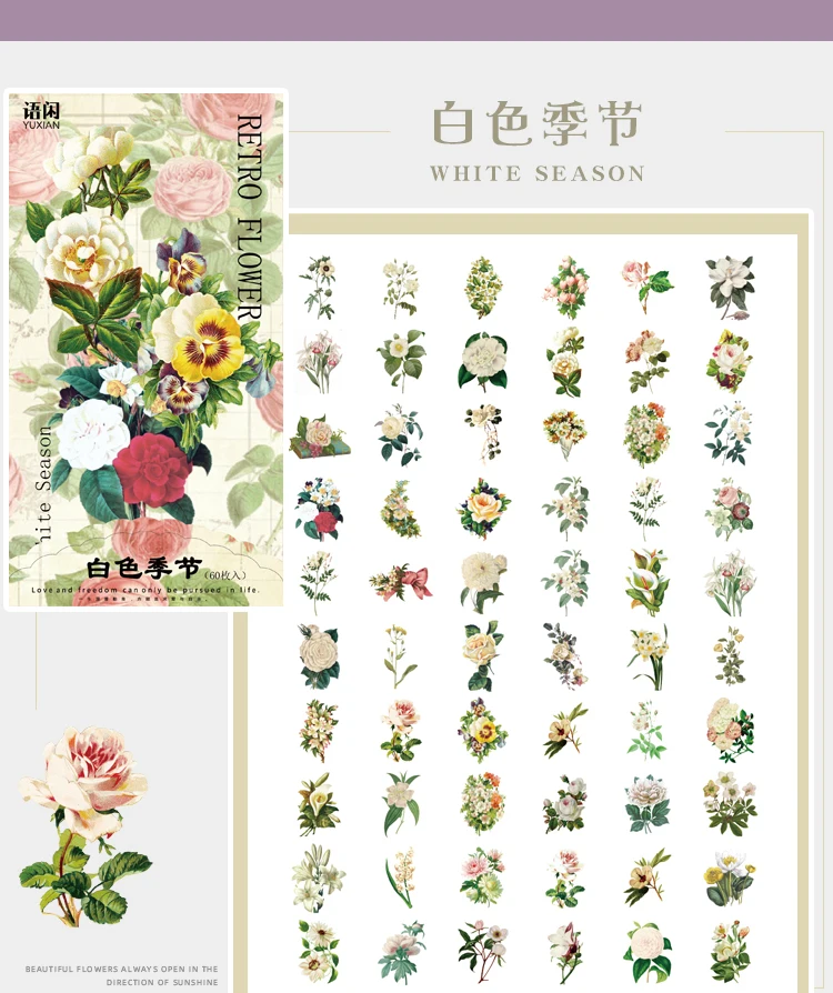 Наклейки в винтажном стиле 60 шт., декоративные Стикеры для скрапбукинга, дневника, канцелярские принадлежности, альбом, прозрачные Стикеры