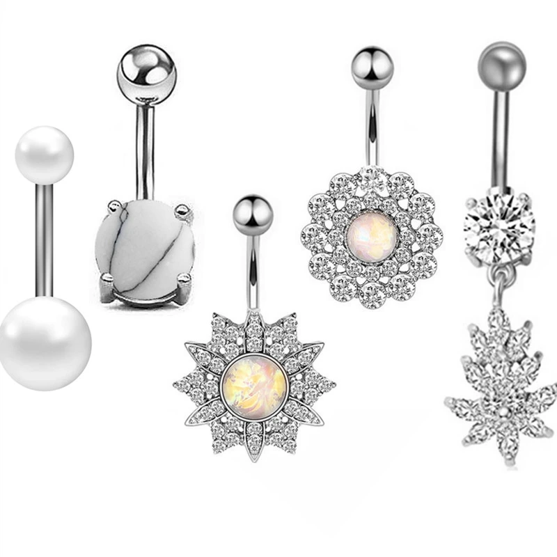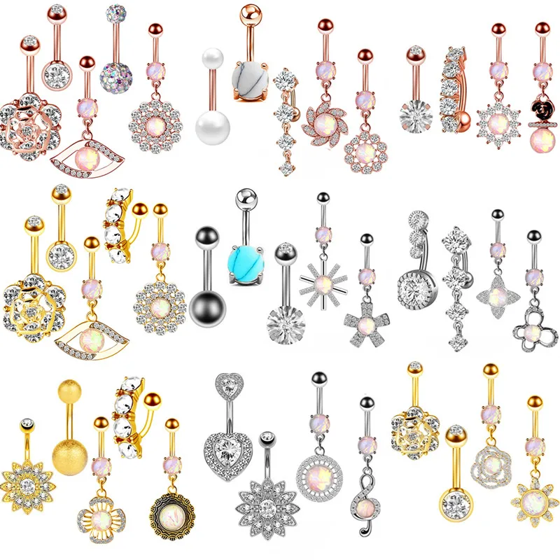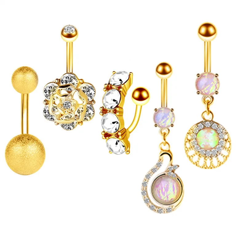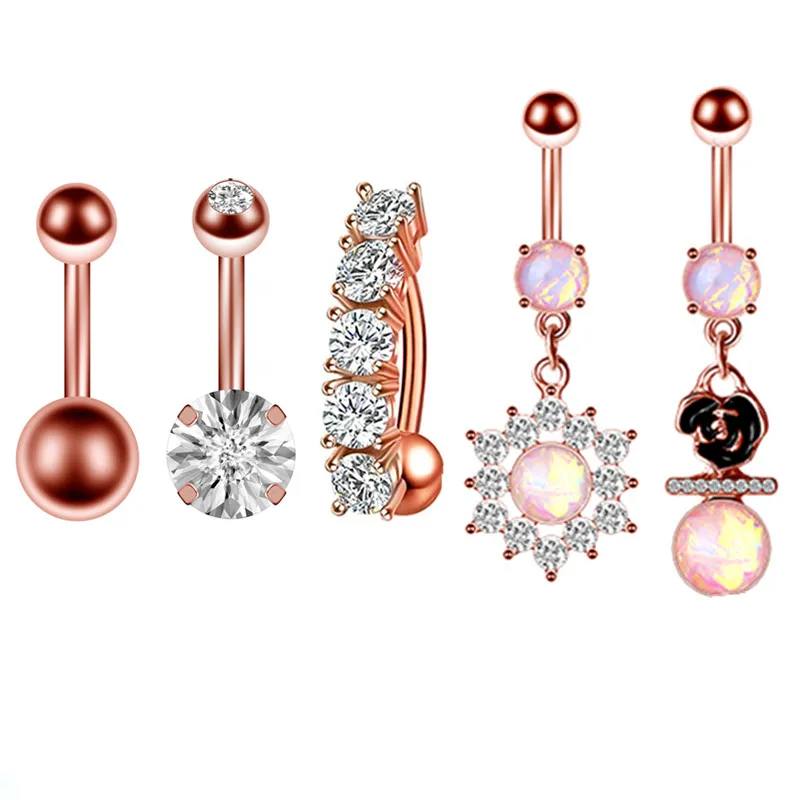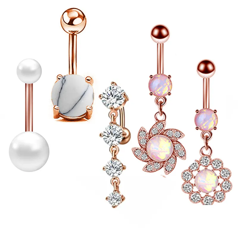 5 шт. опал пупка для пирсинга пупка 14 г цветок кольцо для пирсинга живота партия розовое золото сексуальный пупок набор для пирсинга милое кольцо для живота оптом