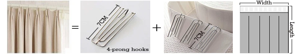 Крючки для штор (ширина 7 см) пришиты поверх штор, подходят для штор или дорожек.