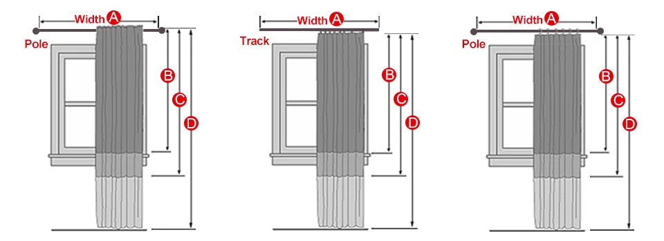 2. Длина штор =B/C/D(До высоты вашего окна).