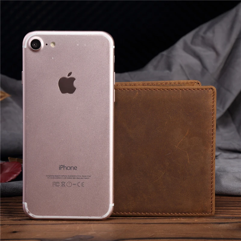 Мужской короткий кошелек в стиле ретро из натуральной воловьей кожи Crazy Horse, тонкий кошелек для денег, карт, фотографий, монет, держатель для мужчин, подарок B199