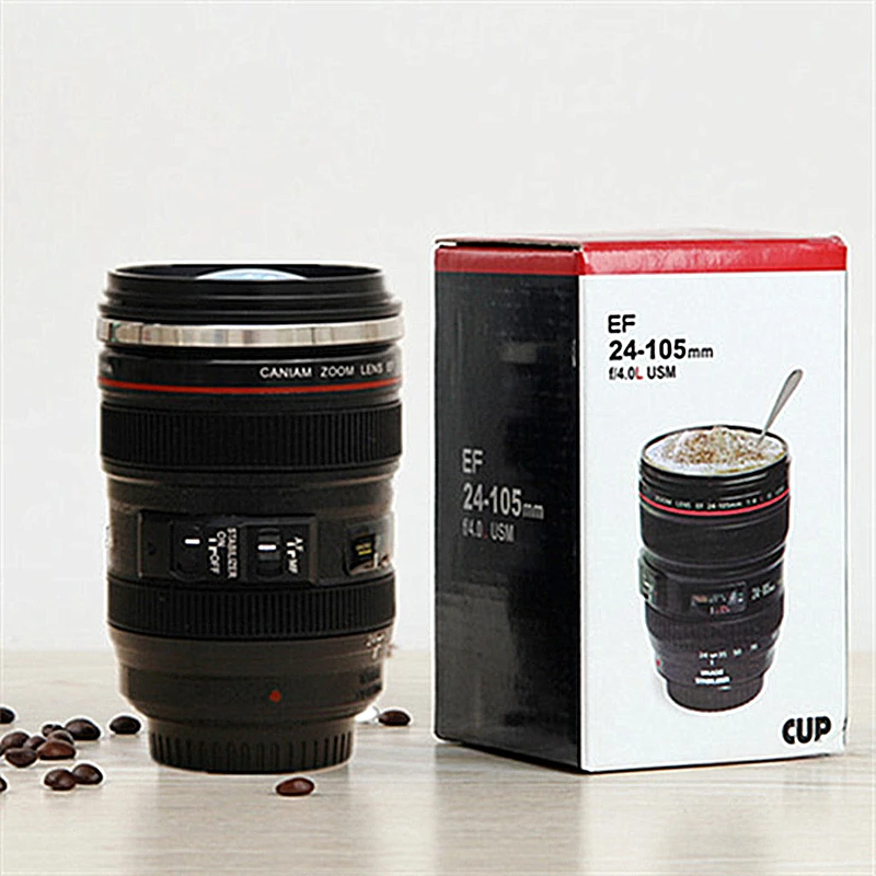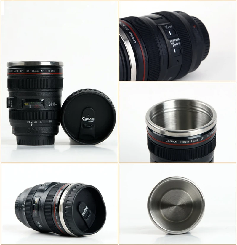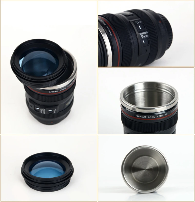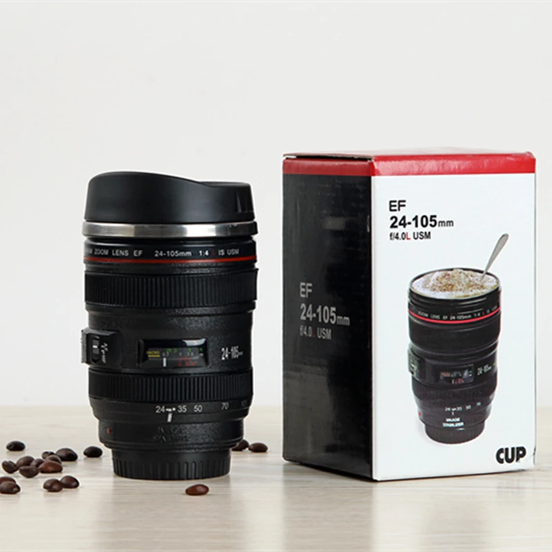 Новинка, 400 мл, нержавеющая сталь, креативный вкладыш, зеркальная камера, объектив, кружки, кофейная чашка, чашка для чая, кружки с крышкой, новинка, подарки, Термокружка, Термокружка