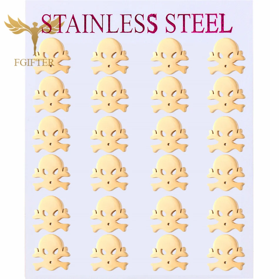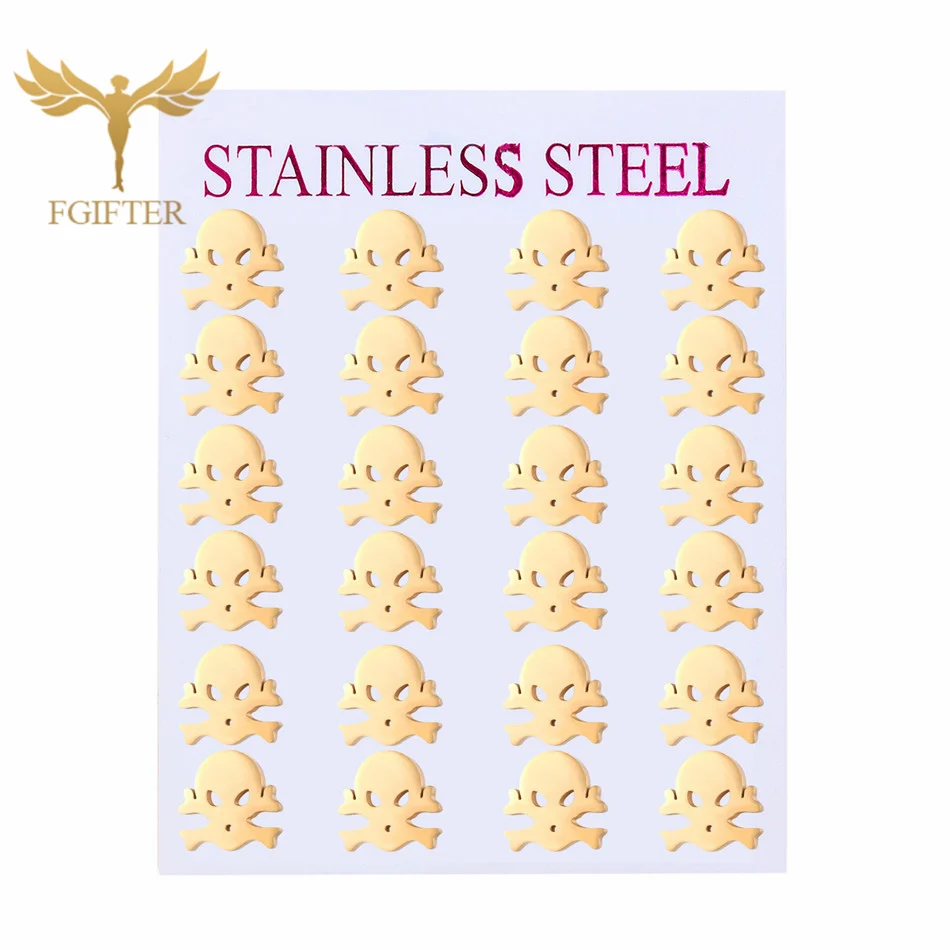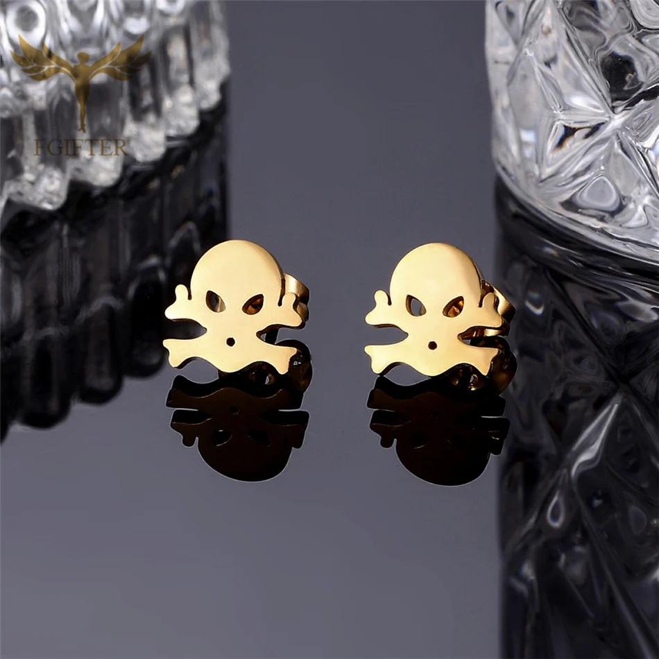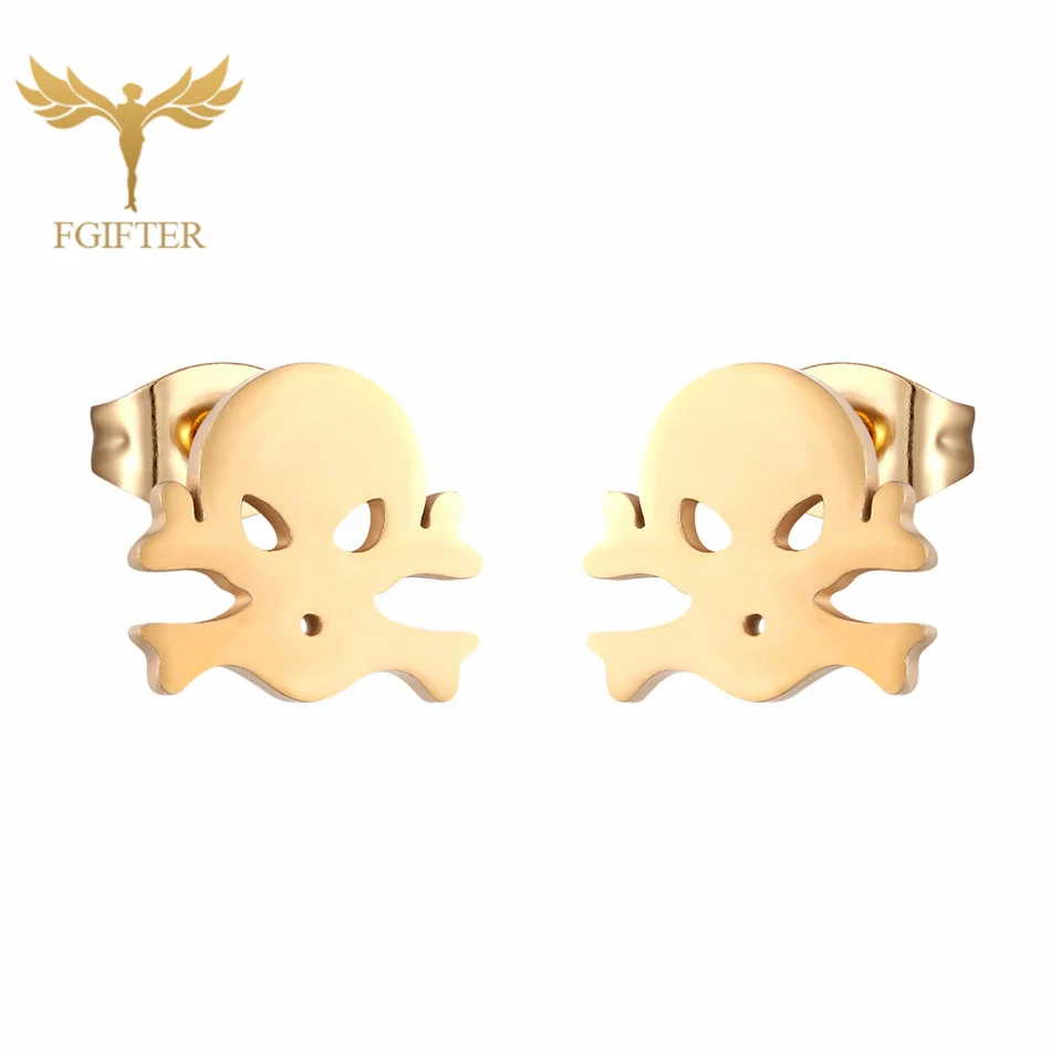 FGifter золотые серьги с черепом Панк ювелирные изделия из нержавею...