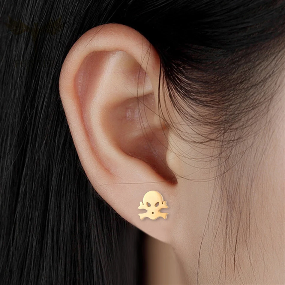 Мужские серьги в стиле панк, серьги-гвоздики в виде черепа, мужские Модные серьги в стиле хип-хоп, золотые ювелирные изделия из нержавеющей стали, оптовая продажа