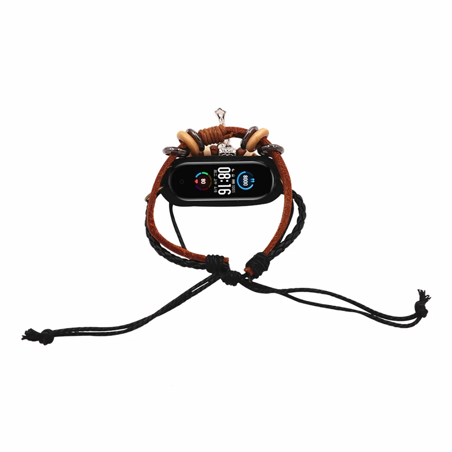 1 х кожаный ремешок на запястье, сменный плетеный браслет для ремешка Xiaomi Mi Band 5 (хост в комплект не входит)