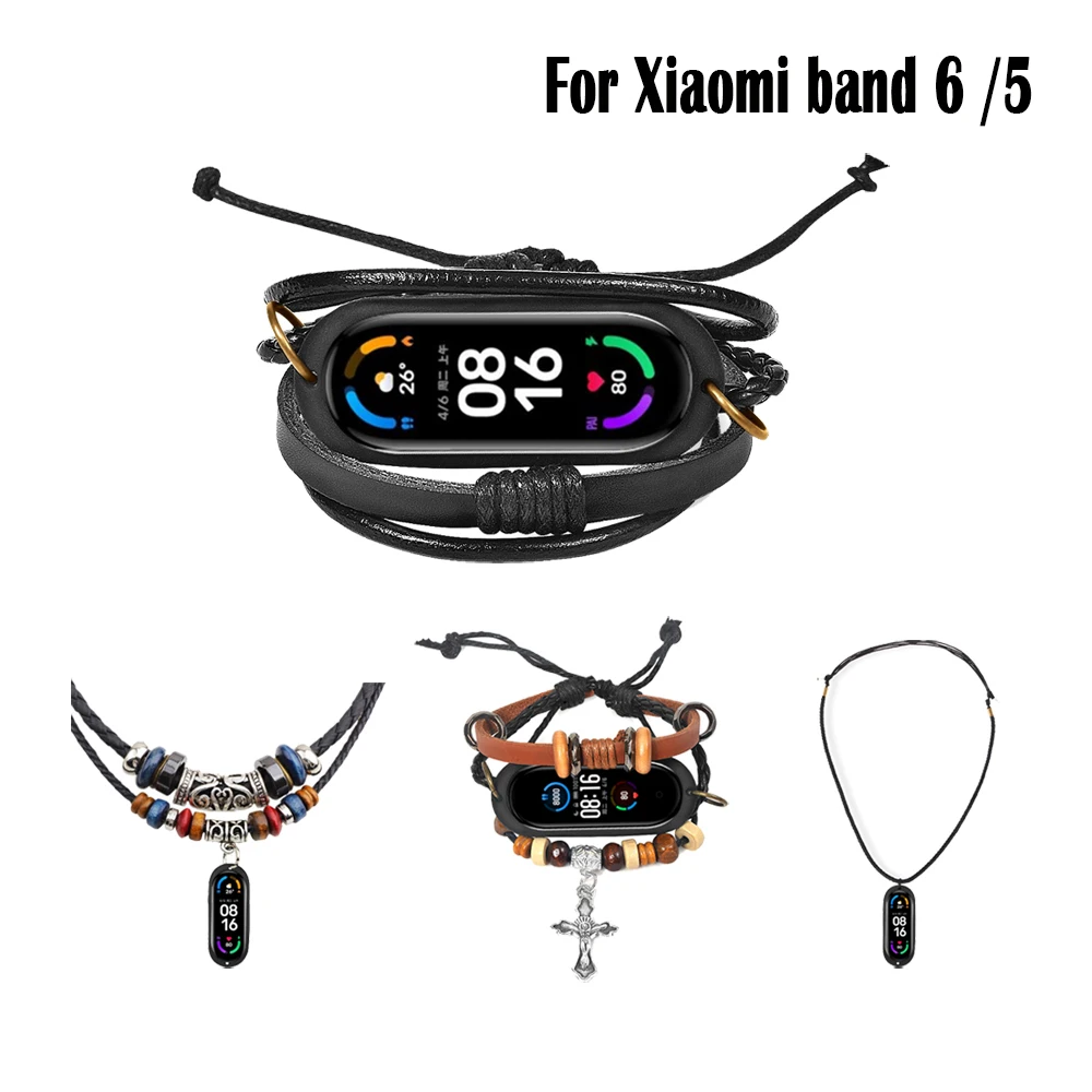 Ремешок для часов Xiaomi Band 6, 5, кожаный, Плетеный, сменный винтажный ремешок для часов Xiaomi Mi Band 6, 5, умные аксессуары