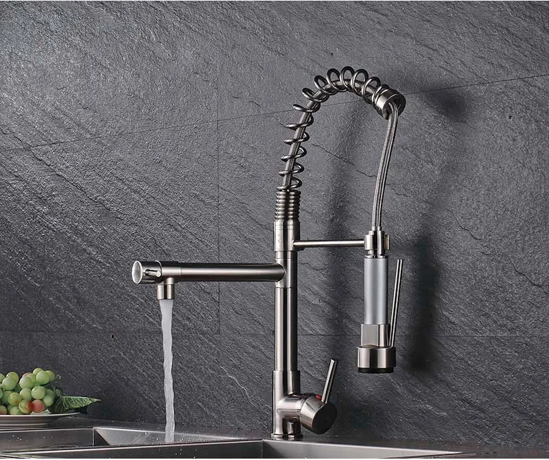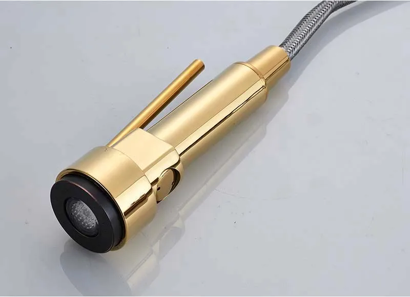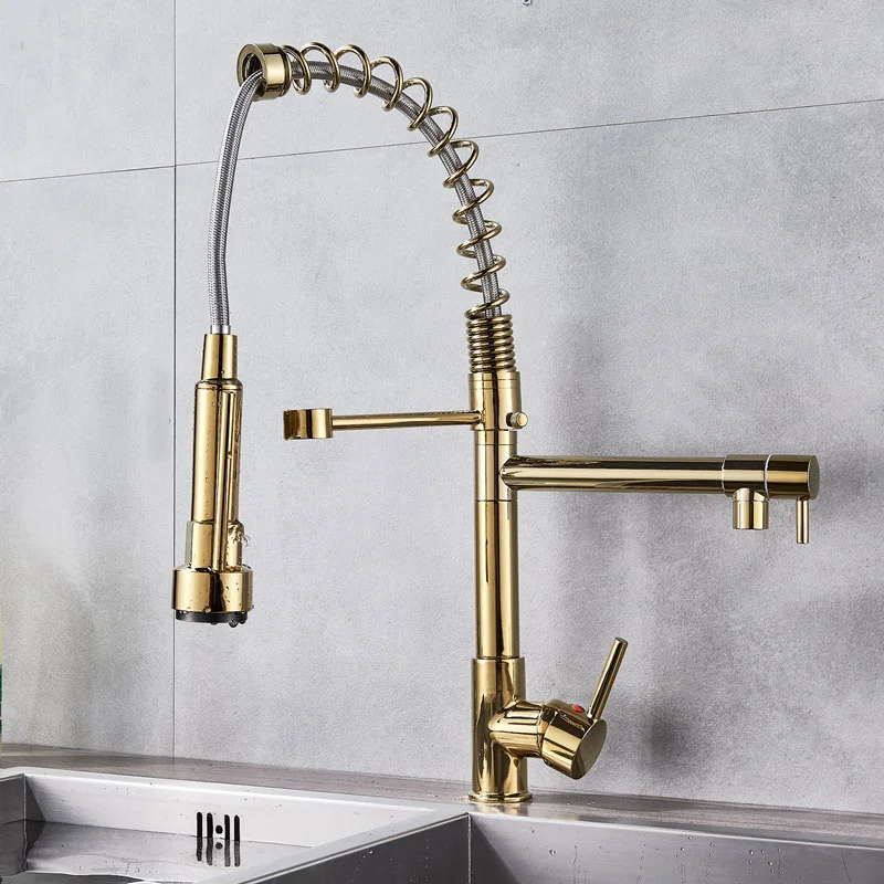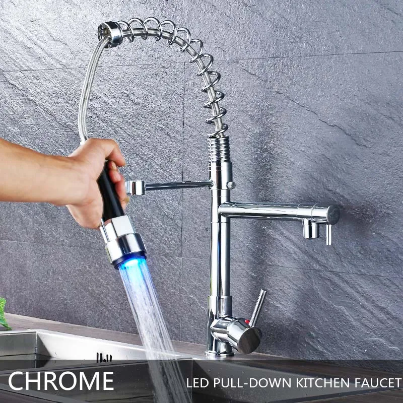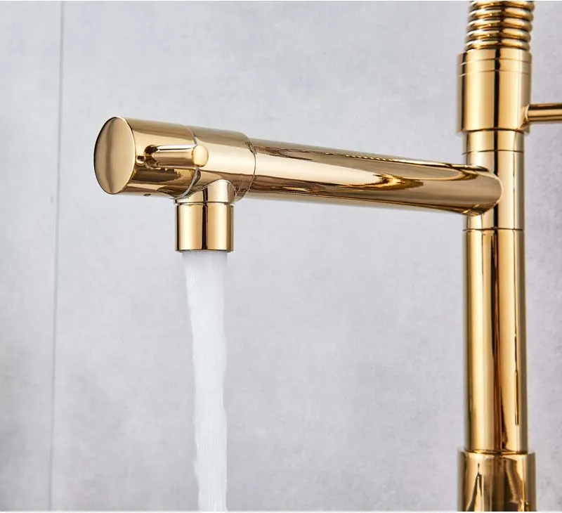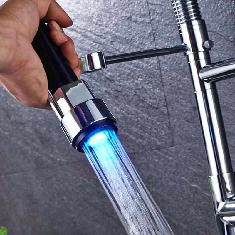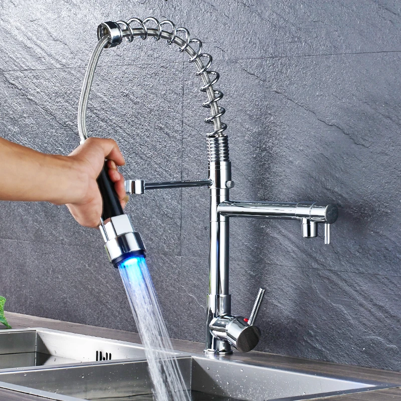 Пружинный смеситель для кухни, выдвижной пружинный смеситель со светодиодный светильник светкой, цвет розового золота, двойной поворотный носик, для горячей и холодной воды