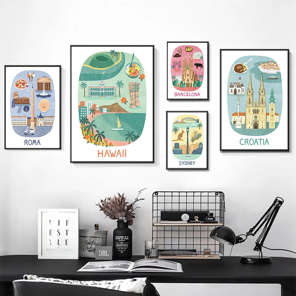 5 шт., декоративные настенные постеры для украшения дома, без рамки