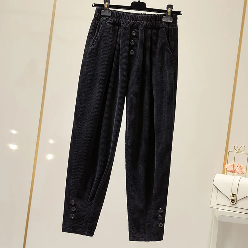 Элегантные женские вельветовые шаровары, повседневные, с высокой талией, винтажные, свободные брюки карандаш, брюки с эластичным поясом