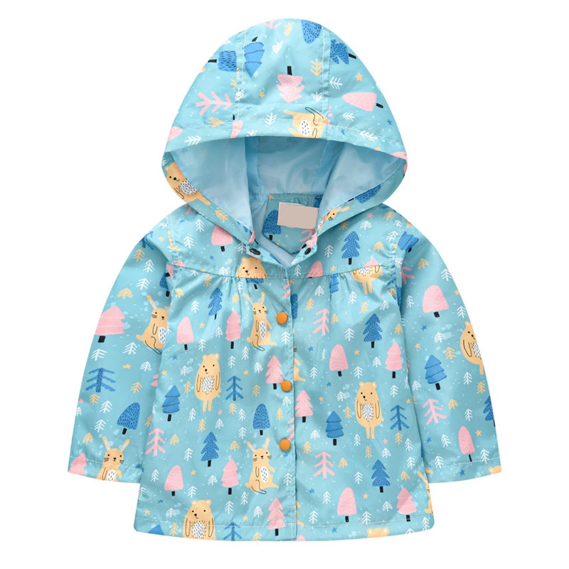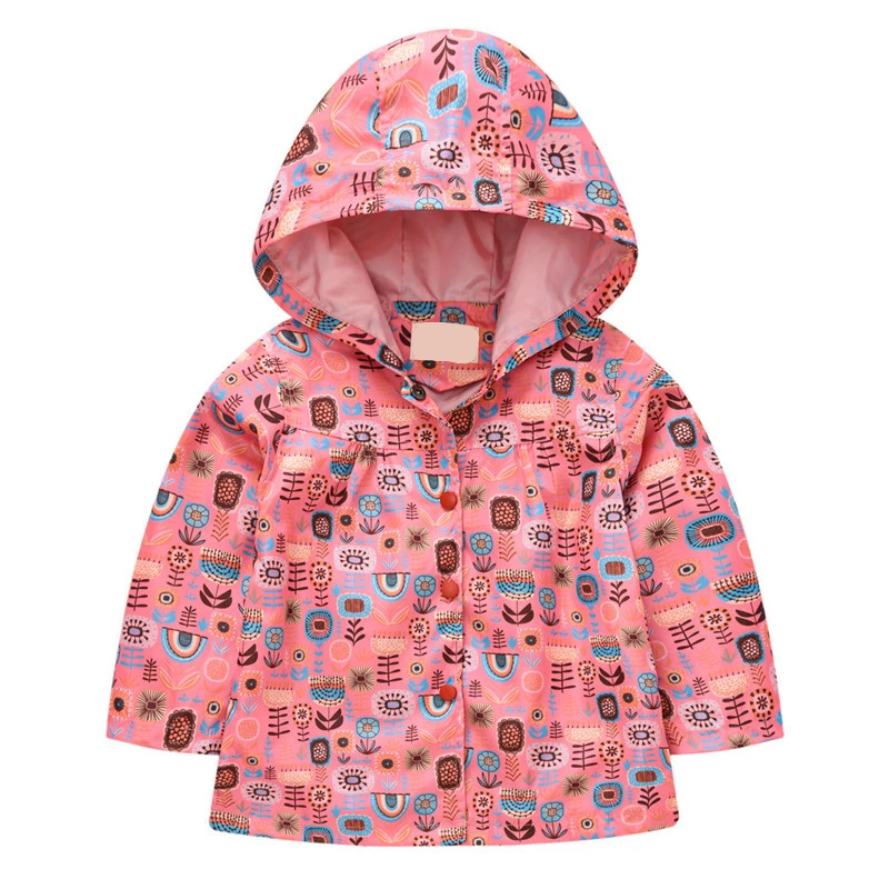 Детская куртка с капюшоном, ветрозащитная дождевая куртка для девочек и мальчиков, однобортная верхняя одежда с принтом, ветровка для детей, верхняя одежда