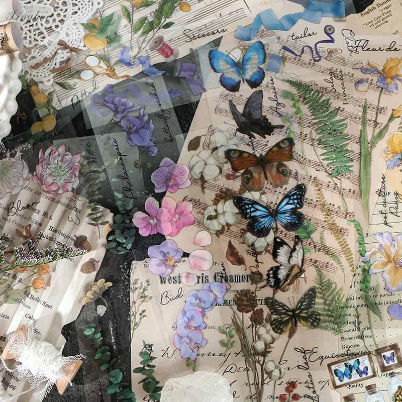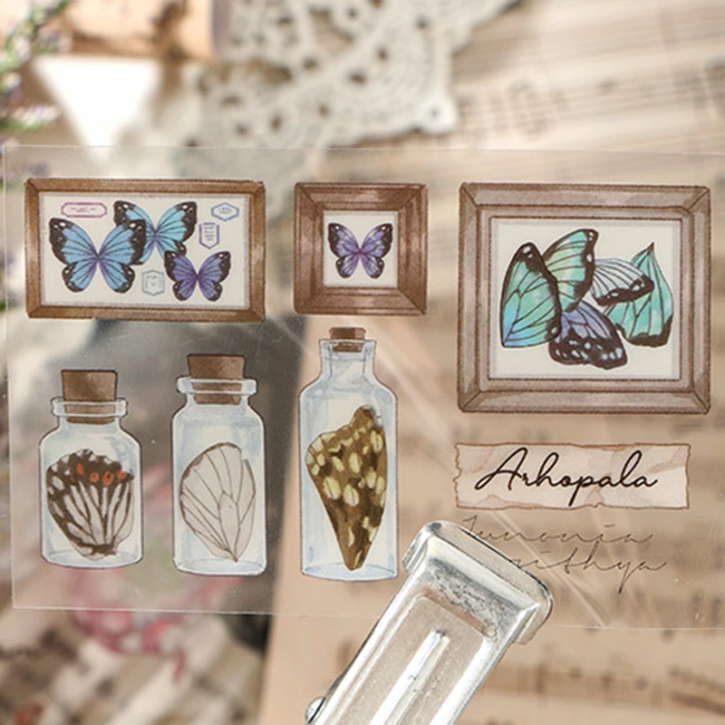 6 шт. винтажная стеклянная посуда с изображением бабочек розы, наклейки для домашних животных, упаковка, сделай сам, дневник, пуля, дневник, украшение, наклейка, альбом, скрапбукинг