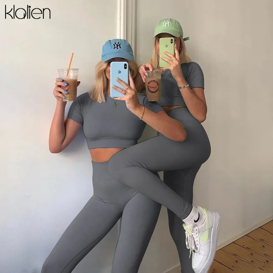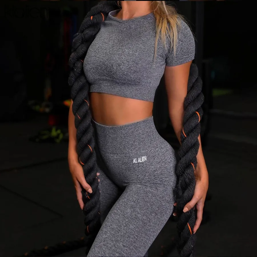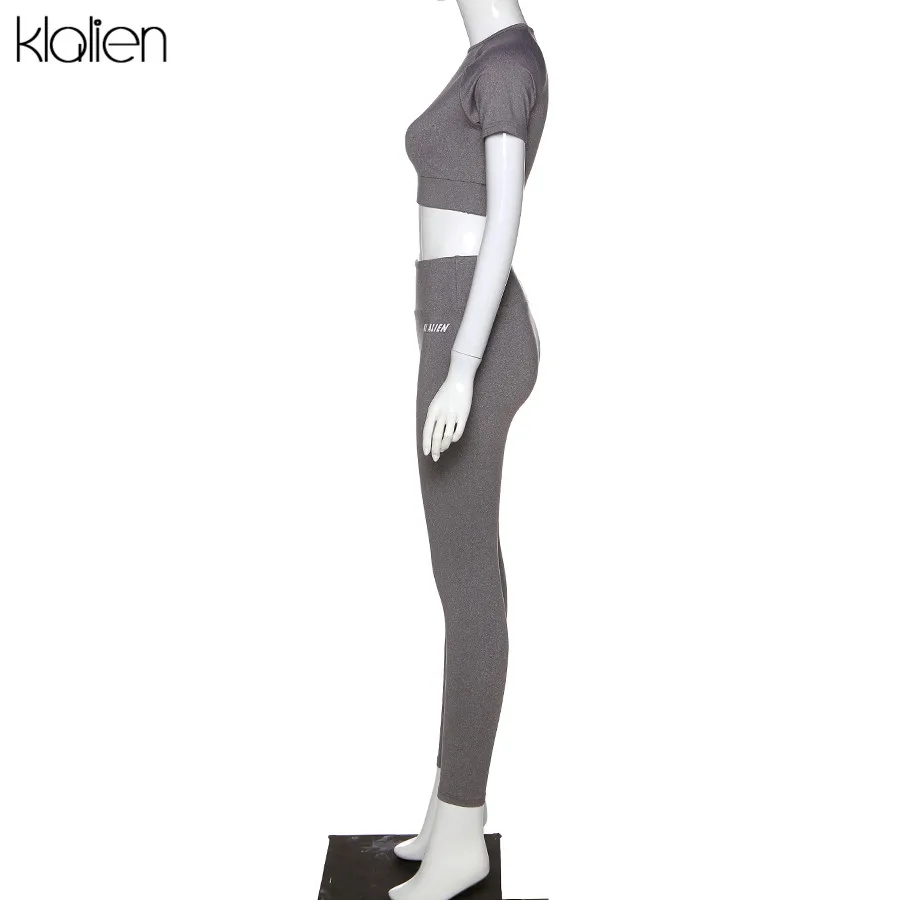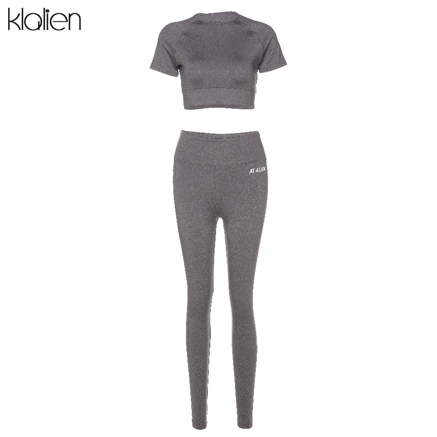 Спортивный костюм KLALIEN для фитнеса, женская одежда для активного отдыха, футболка и брюки, комплект из 2 предметов, эластичный облегающий тренировочный костюм с надписью