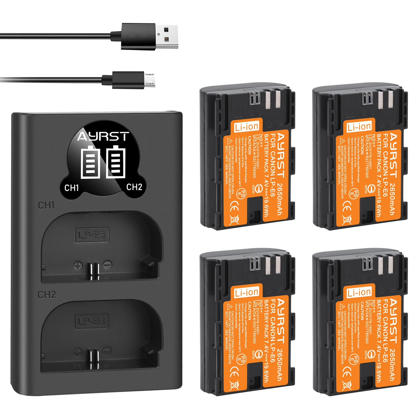Аккумулятор 2650 мА ч LP-E6 LP E6 LPE6, двойное зарядное устройство для камеры Canon 5D 5DS Mark II III 7D 60D EOS 6D 70D 80D, E6N
