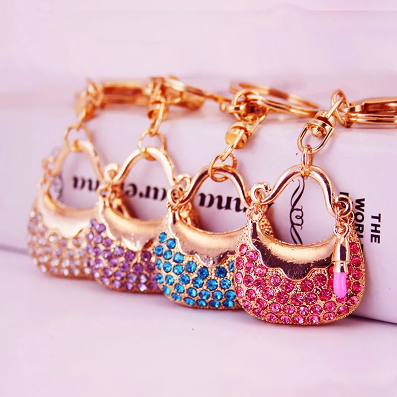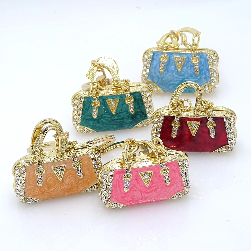 Креативный ювелирный набор брелок для ключей, стразы, сумочка, автомобильный брелок, аксессуары для сумок, металлическая эмалированная подвеска, небольшой подарок