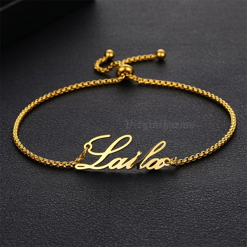 Virgincharms при индивидуальном заказе Регулируемый Золотое нержавеющая сталь имя браслеты из нержавеющей стали для женщин табличка ювелирные браслеты и кулоны