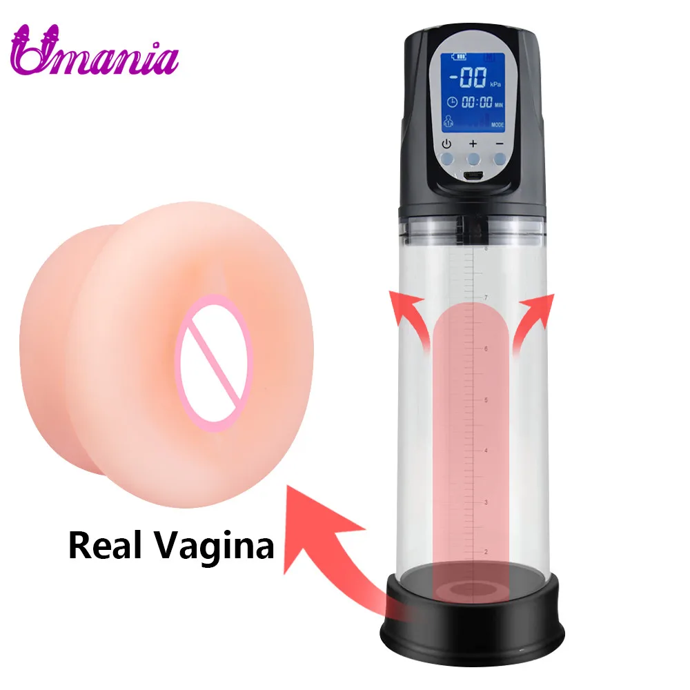Насос-увеличитель пениса с настоящим влагалищем, секс-игрушки для мужчин, автоматический вакуумный насос для долгой эрекции, удлинитель пениса Увеличитель пениса