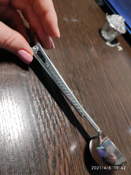 Удобная ложечка зажим,пришла быстро спасибо продавцу!