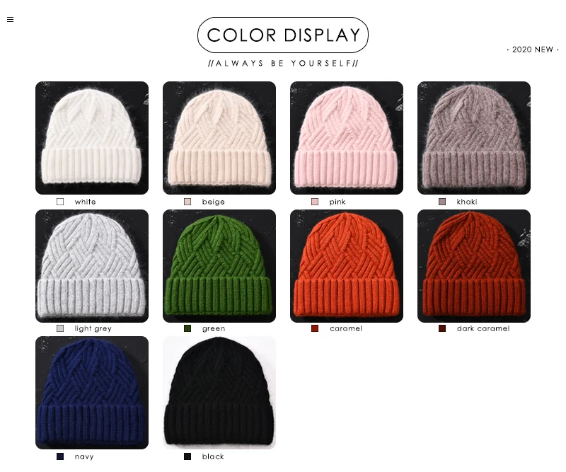 Женские облегающие шапки зимние шапки из кроличьего меха для женщин Повседневная Осенняя кашемировая вязаная шапка 2020 модная Высококачественная Мягкая шерстяная шапка