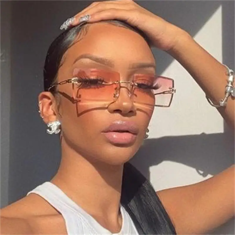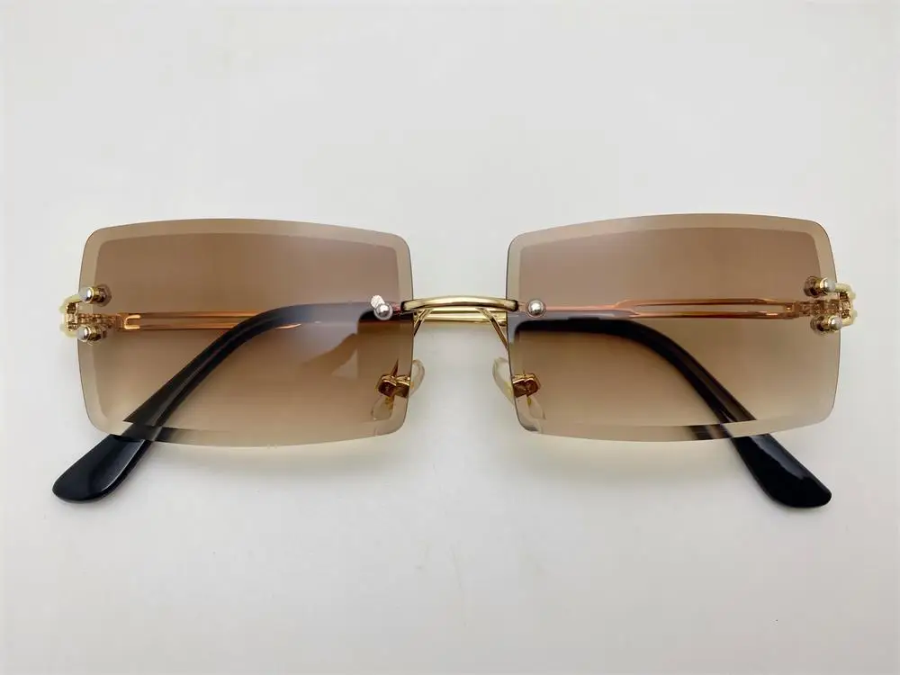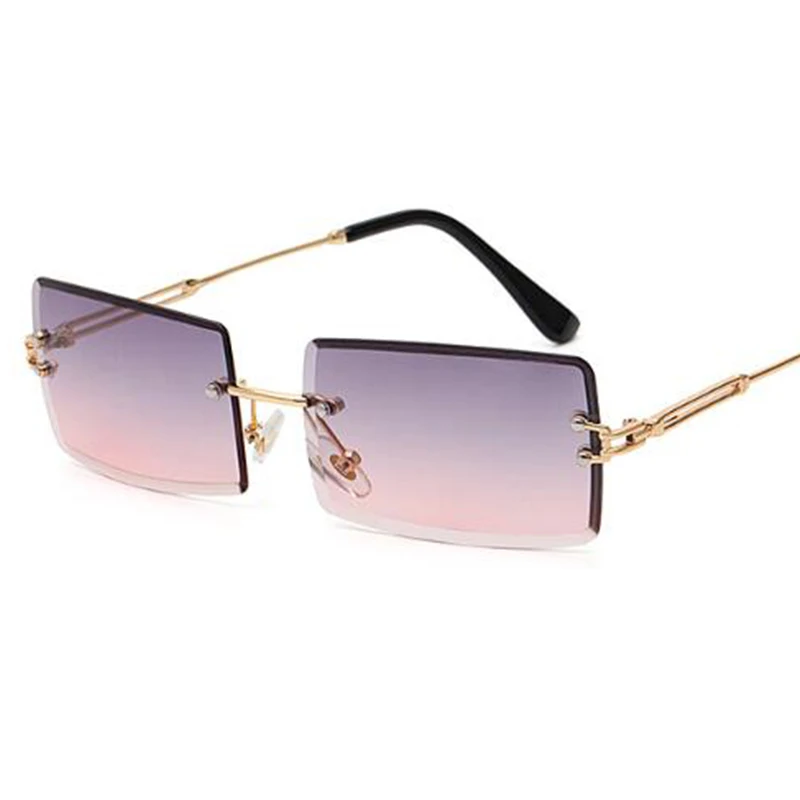 Солнечные очки без оправы для мужчин и женщин, привлекательные прямоугольные модные солнцезащитные аксессуары в винтажном стиле, с градиентными линзами, с литой оправой, чёрные