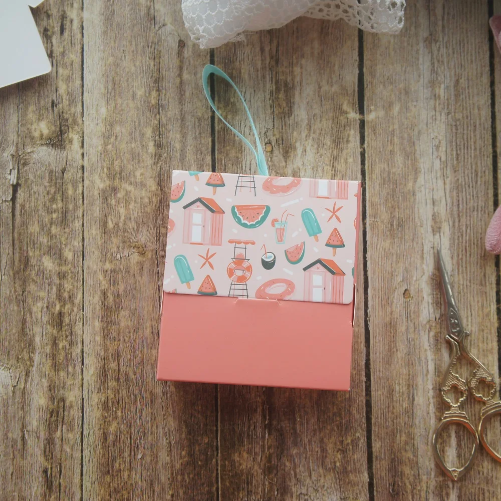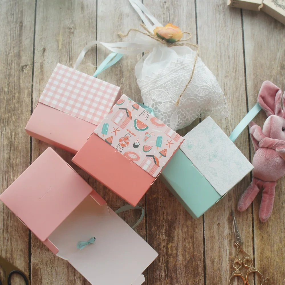 10 шт. в розовую сетку, арбуз, синий цветок, бумажная коробка для конфет с лентой в качестве небольшой упаковки для подарка, Рождественские Свадебные сувениры, подарки, Декор