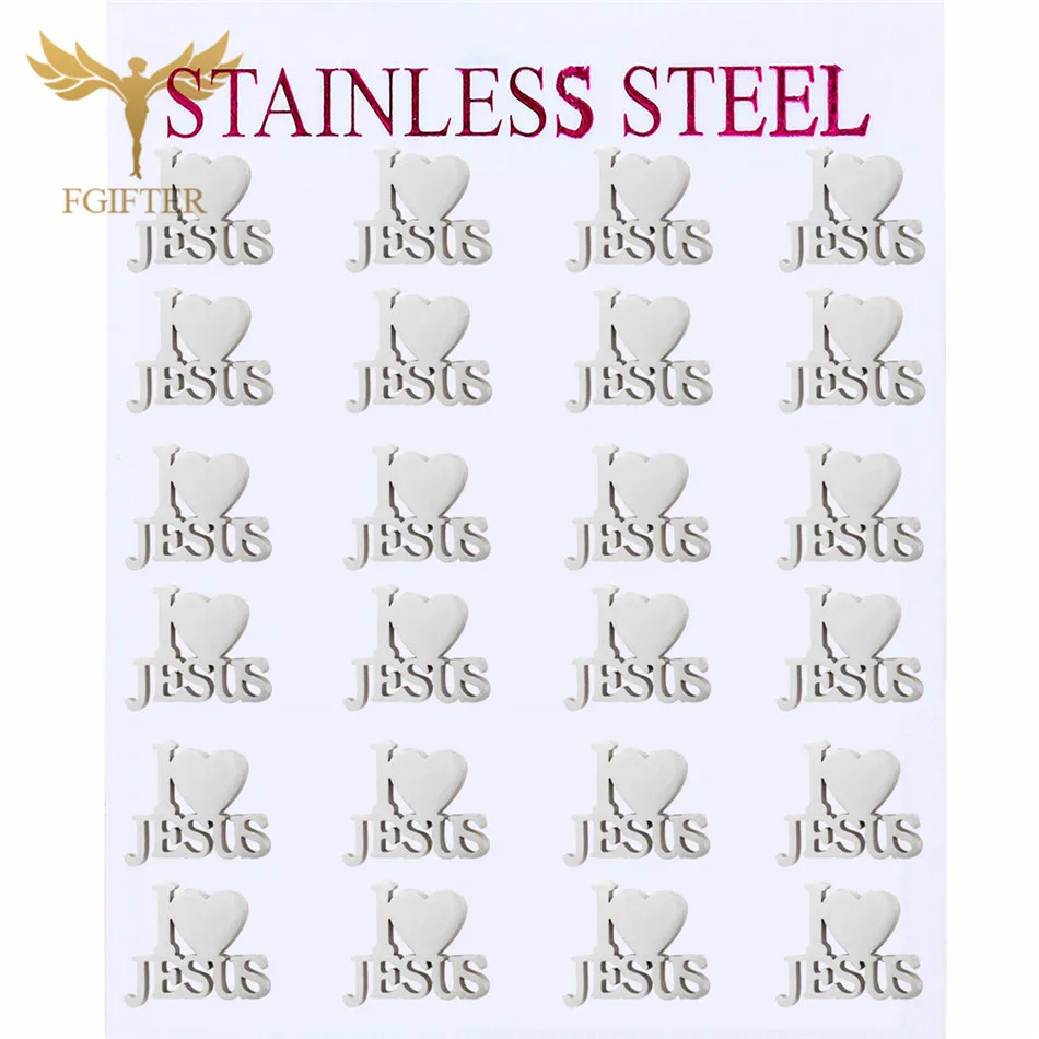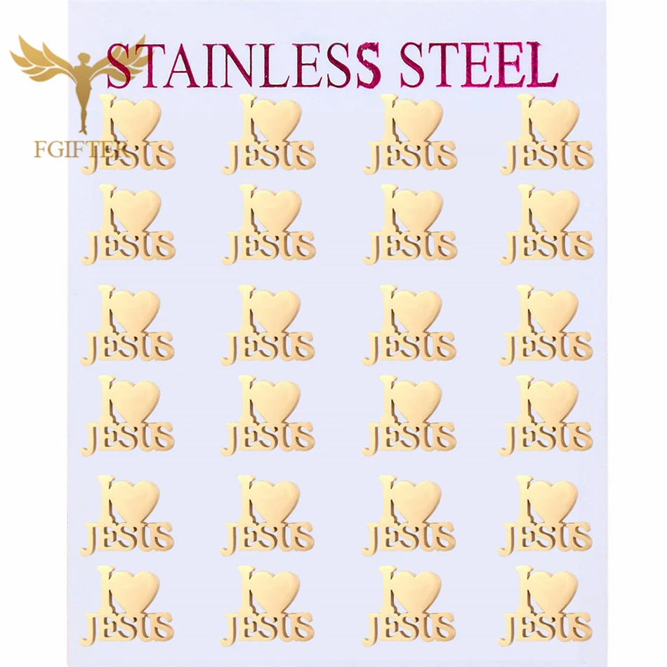 Серьги из нержавеющей стали, оптовая продажа, 12 пар, серьги-гвоздики с сердцем и Иисусом для мужчин и женщин, модные серьги-гвоздики 2022