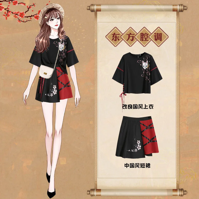 Аниме Летняя женская одежда японская красная лента девушка Лолита футболка короткая юбка комплект взрослый костюм