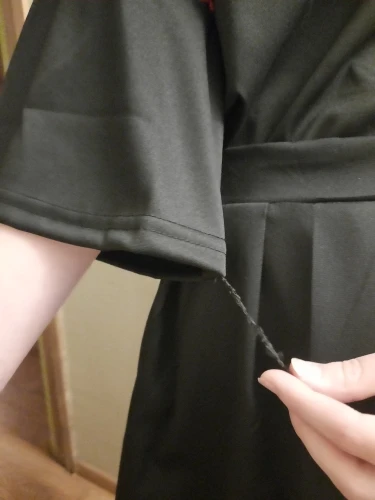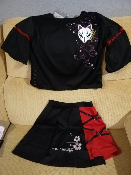 Очень двоякое ощущение у меня от покупки данного комплекта. Брала юбку и блузку. И если блузка полностью соответствует описанию, красивая, удобная, качественная (очень понравилась), то юбка это полный треш. Красная часть судя по фото должна быть сверху, то есть как бы складками. Плюс сама юбка должна быть покроя клёш. Но вместо этого она почти как юбка карандаш. То есть сделать подобные складки как на картинке не представляется возможным. Ну и кривые швы в придачу) Часть денег за юбку вернули, но ощущения неприятные