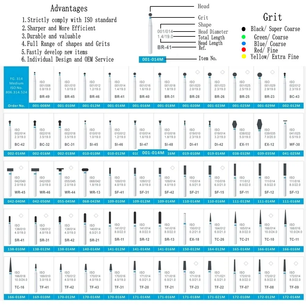 10 шт.кор. алмазные Зубные сверла FG Dia-Burs 1,6 мм хвостовик для высокоскоростных наконечников burs
