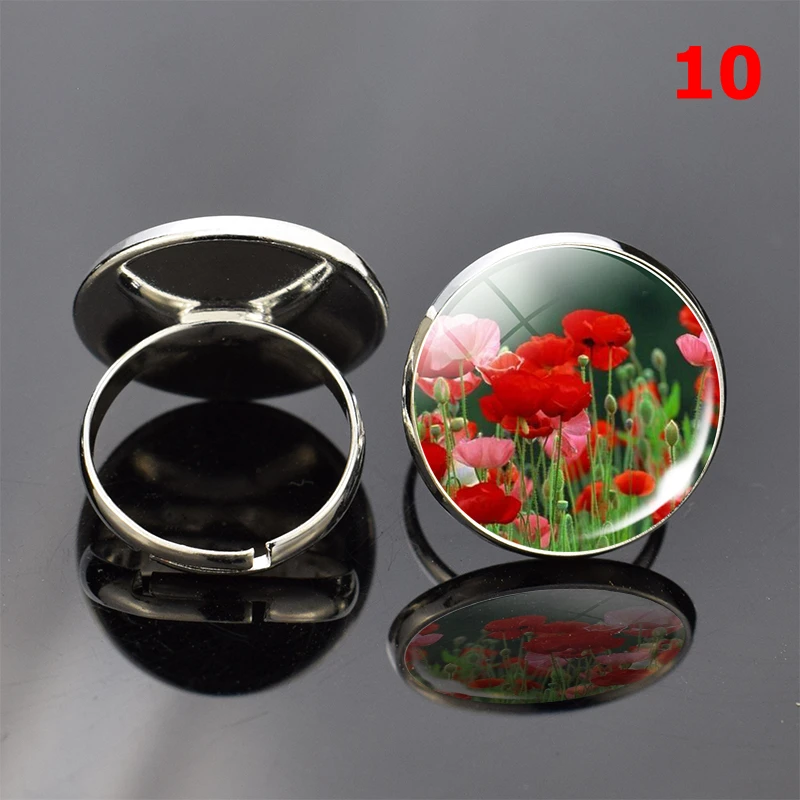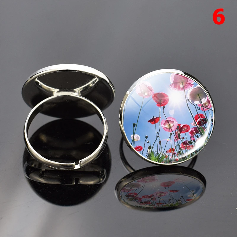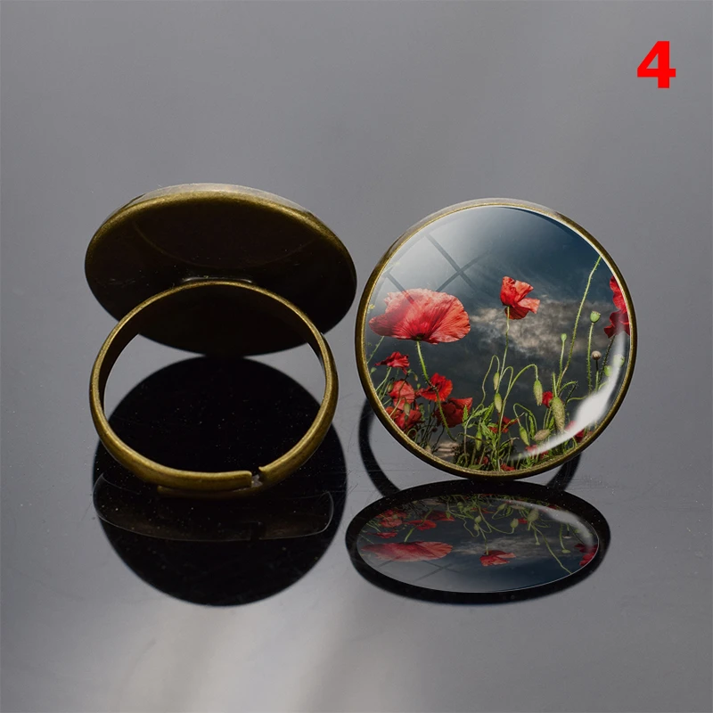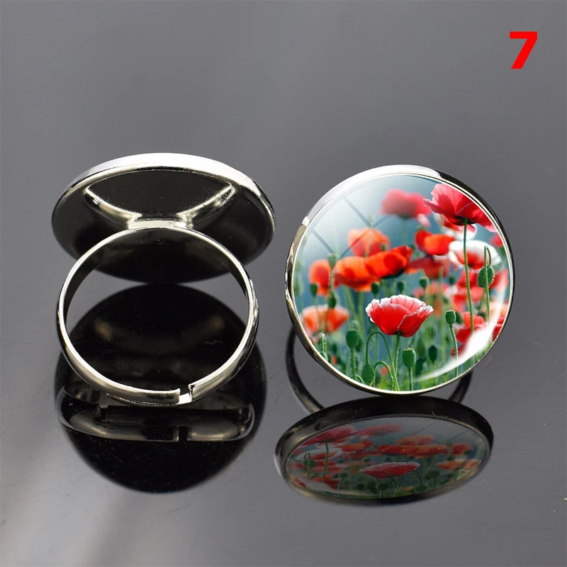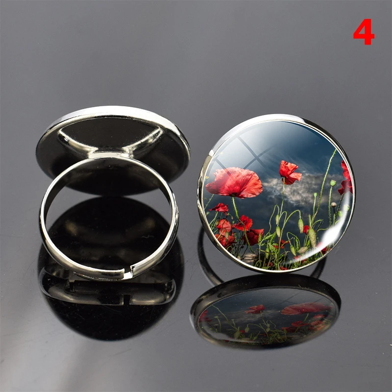 Кольцо с цветком мака стеклянный купол красивое кольцо с цветком для мужчин и женщин ювелирные изделия аксессуары подарите друзьям модные подарки
