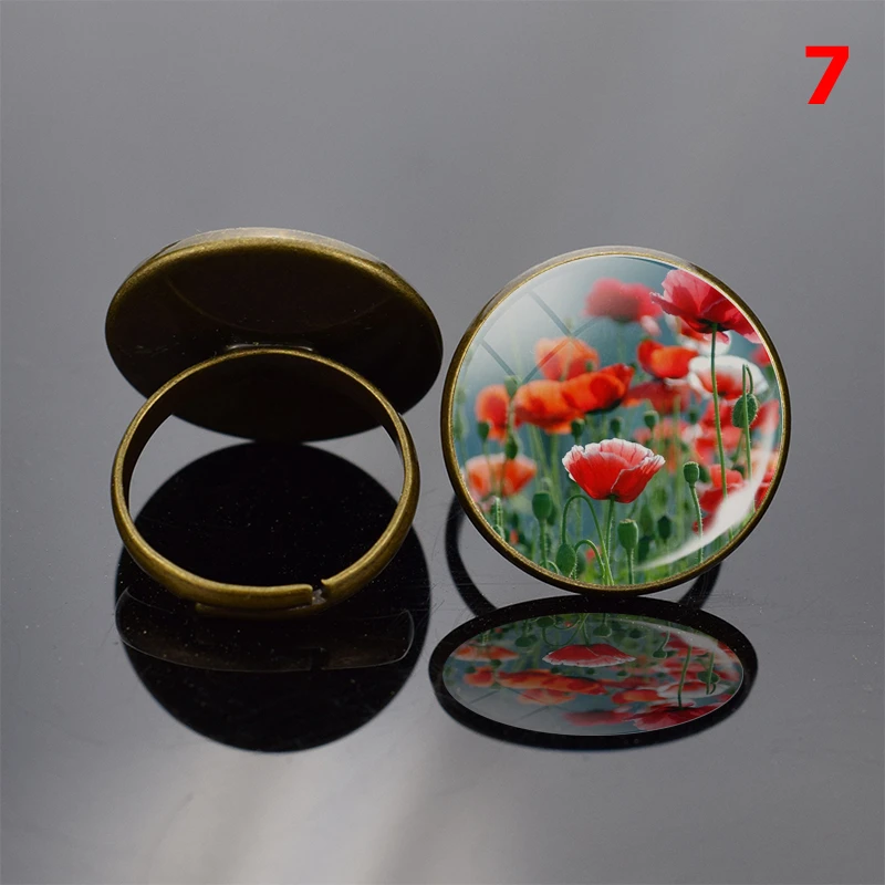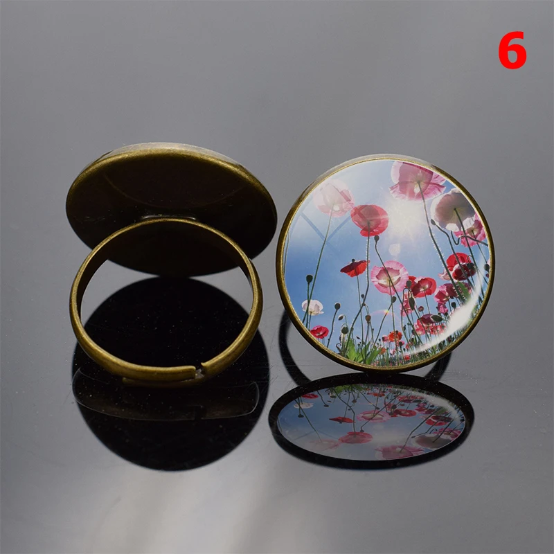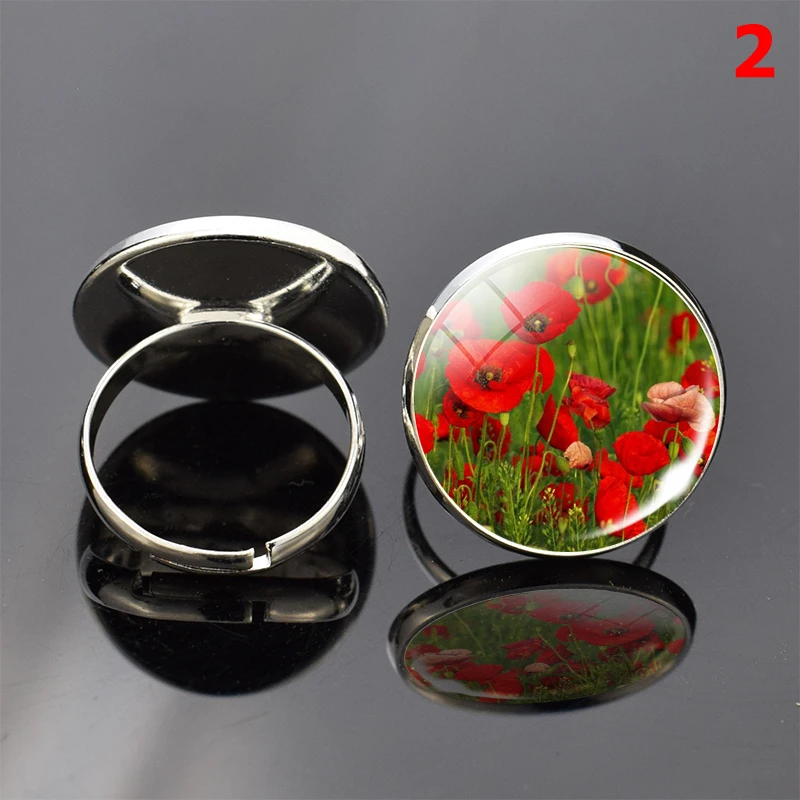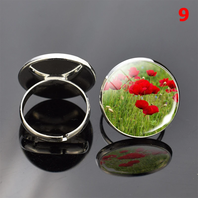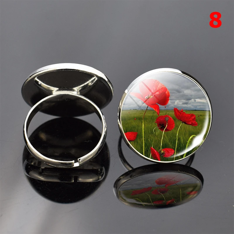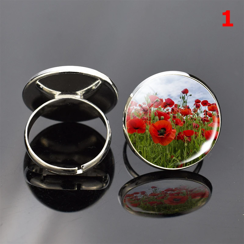 Кольцо с цветком мака стеклянный купол красивое кольцо с цветком для мужчин и женщин ювелирные изделия аксессуары подарите друзьям модные подарки