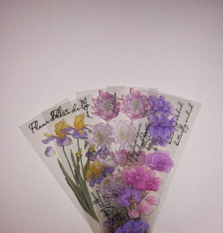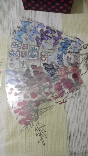 красивые не яркие цветы, отклеиваются от основы хорошо, в деле ещё не проверяла. Доставка достаточно долгая (попал в пакет с другим заказом и застрял у таможенного брокера)