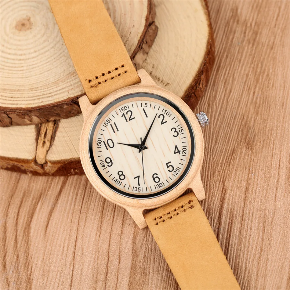 Часы из кленового дерева с арабскими цифрами, женские кварцевые коричневые часы из натуральной кожи, женские деревянные часы, подарки