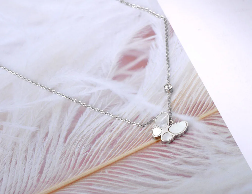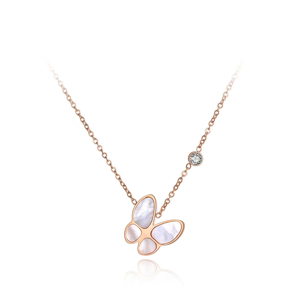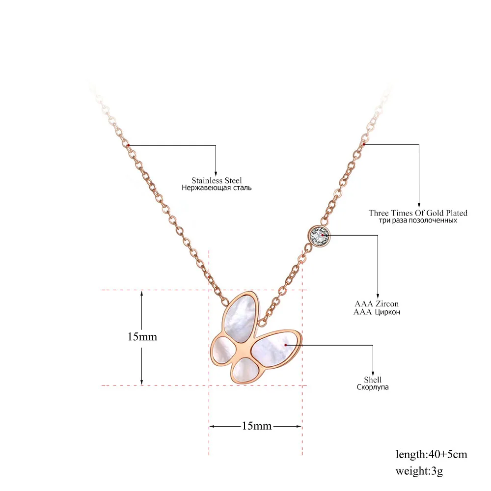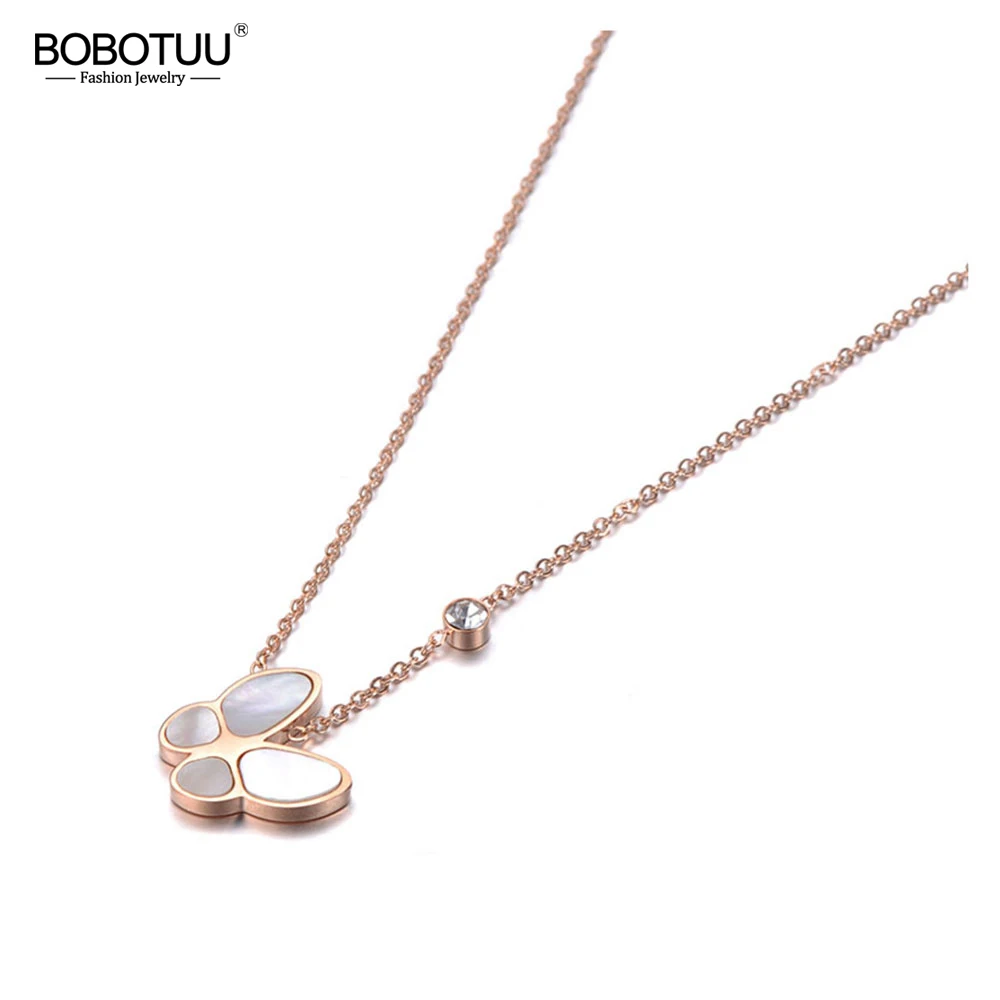 BOBOTUU оригинальный Титановый стальной кулон в виде бабочки, животное, ювелирные изделия, CZ Кристалл ракушки, колье, свадебные ожерелья для женщин BN19090
