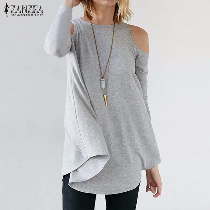 Рубашка ZANZEA Женская Повседневная с открытыми плечами, модная блузка с длинным рукавом, базовая Туника оверсайз, лето 2022