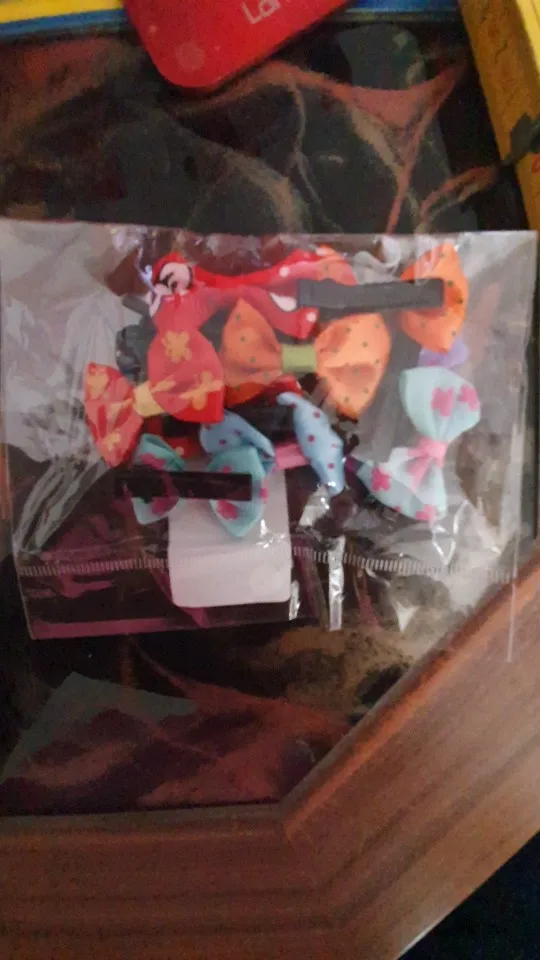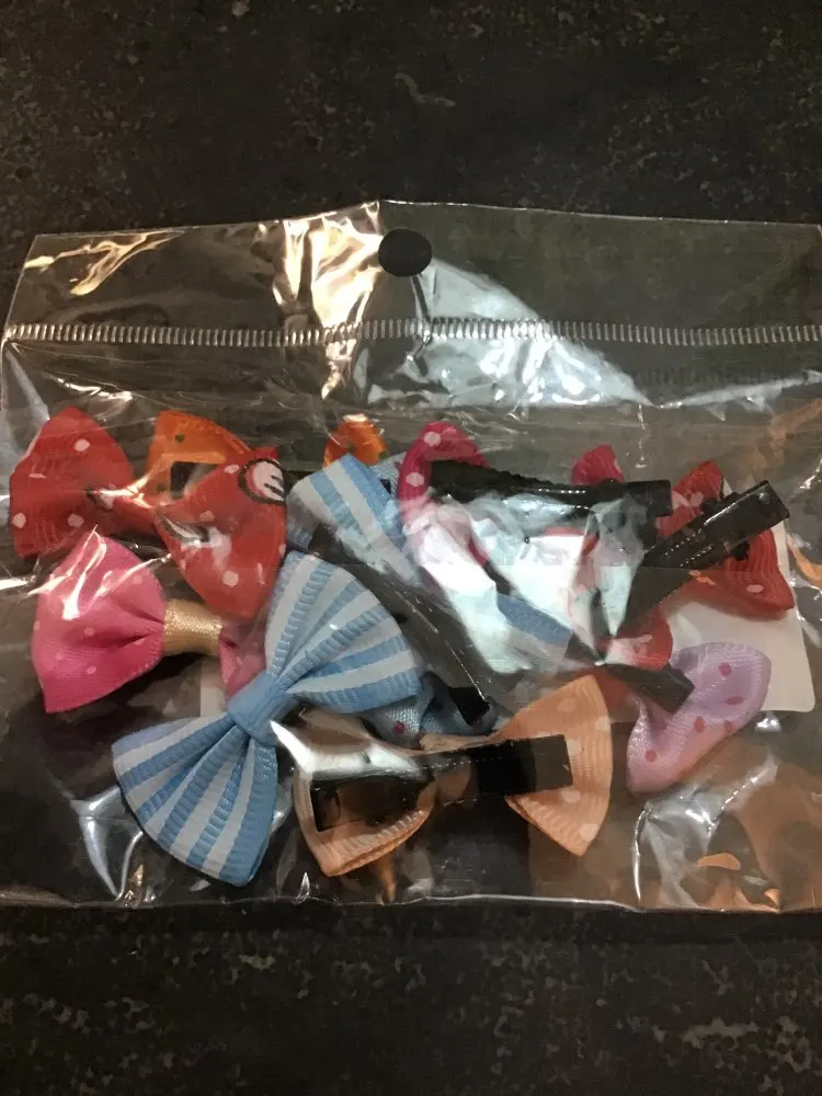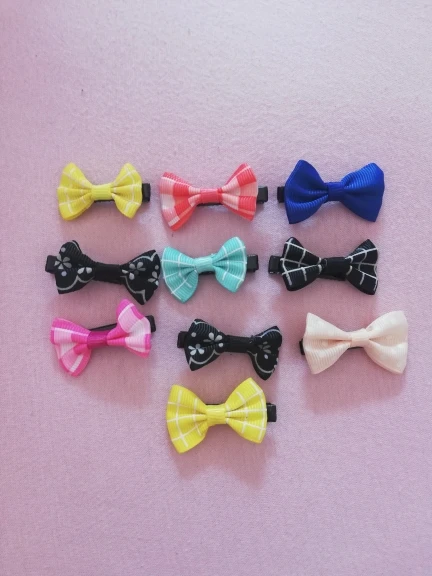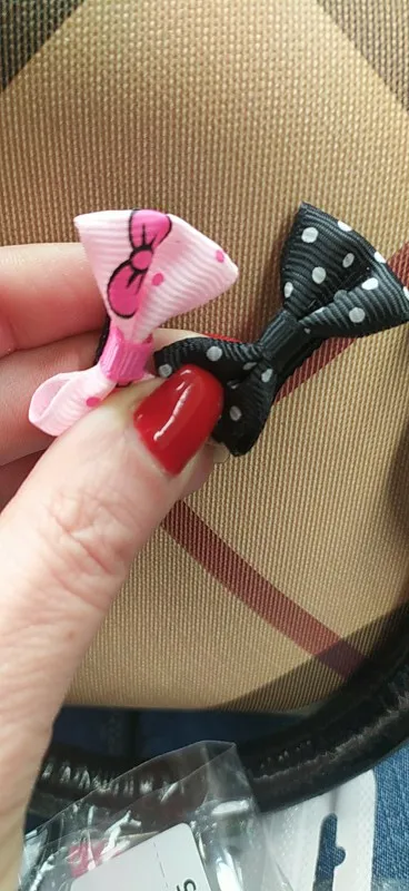 Маленькие миленькие очень удобные бантики на прищепке. Рандомно. Розовых получилось больше всего, чему я очень рада. Доставка в Москву довольно быстрая. Недели три