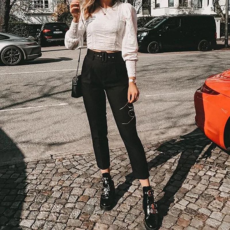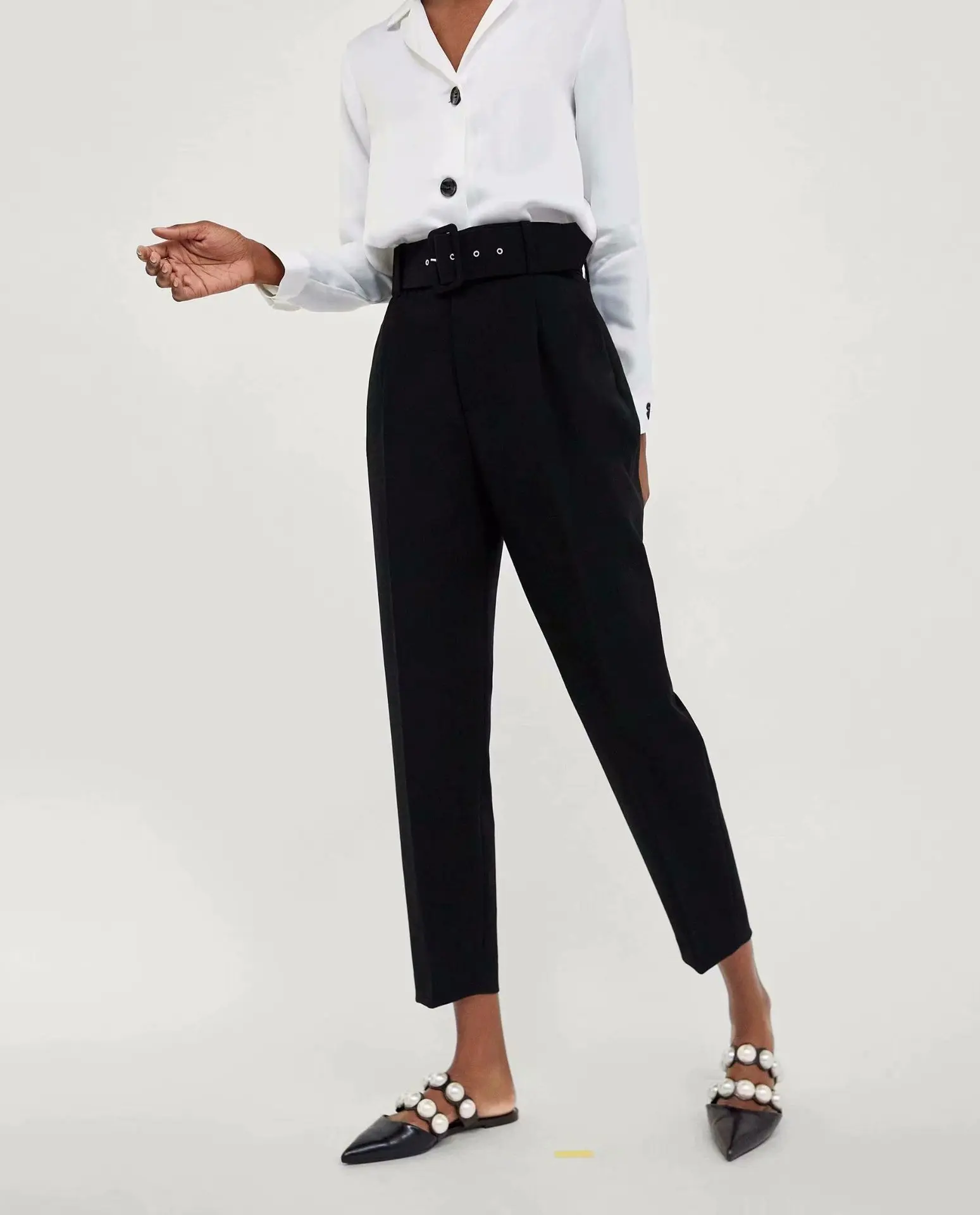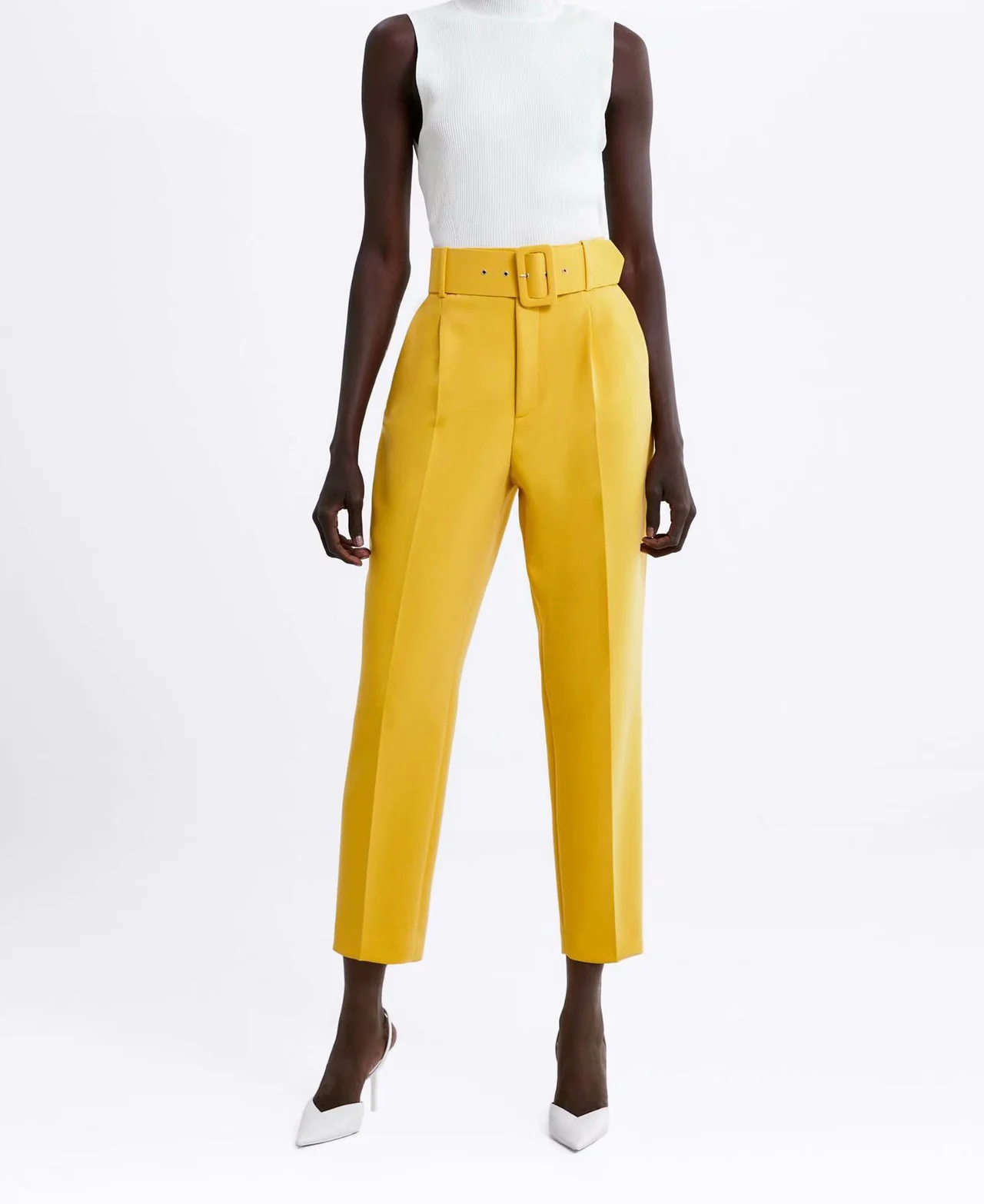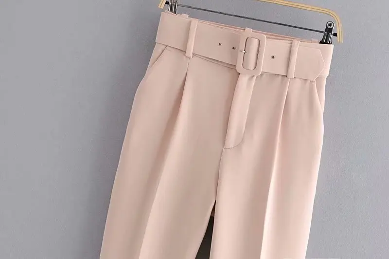 Женский костюм, брюки с высокой талией, брюки с поясом и карманами, офисные женские штаны, модные брюки среднего возраста розового и желтого цвета