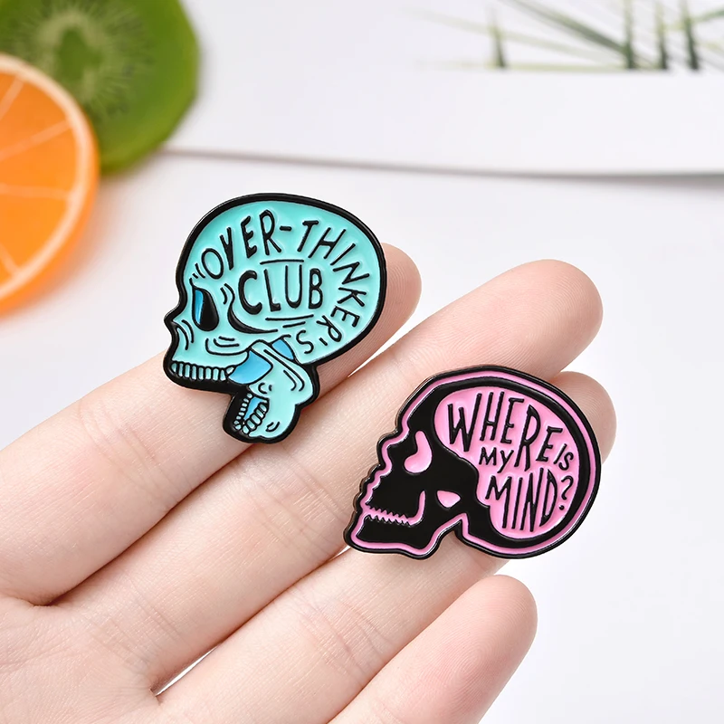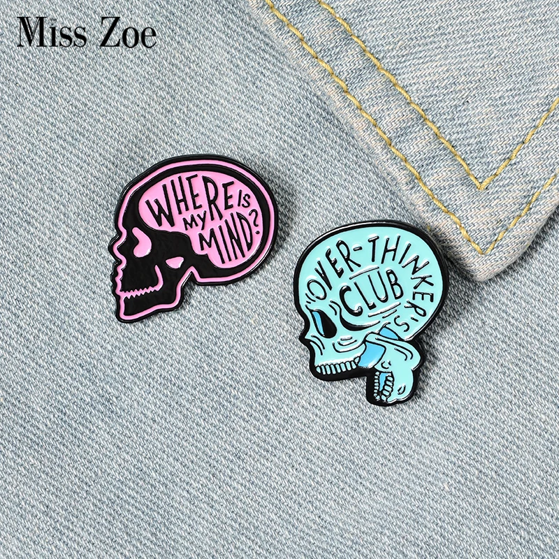 Где мой разум Эмалевые булавки на заказ Overthink Броши с черепом булавка на лацкан значок со скелетом ювелирные изделия подарок для друзей